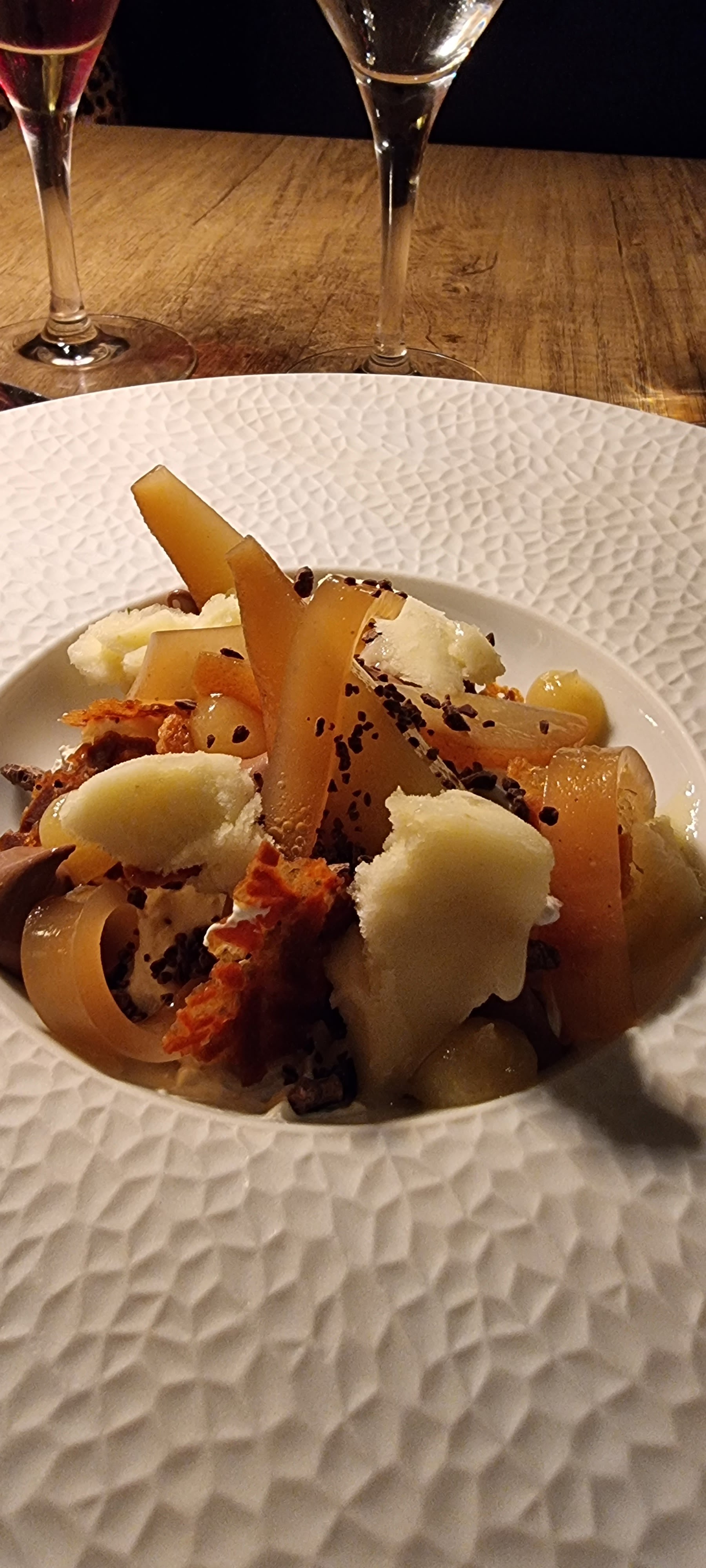 Super repas ! Digne d'un gastro ! Produits nobles et raffinés présentation très originale personnel très accueillant sympa et de très bons conseils prix correct Je recommande +++++