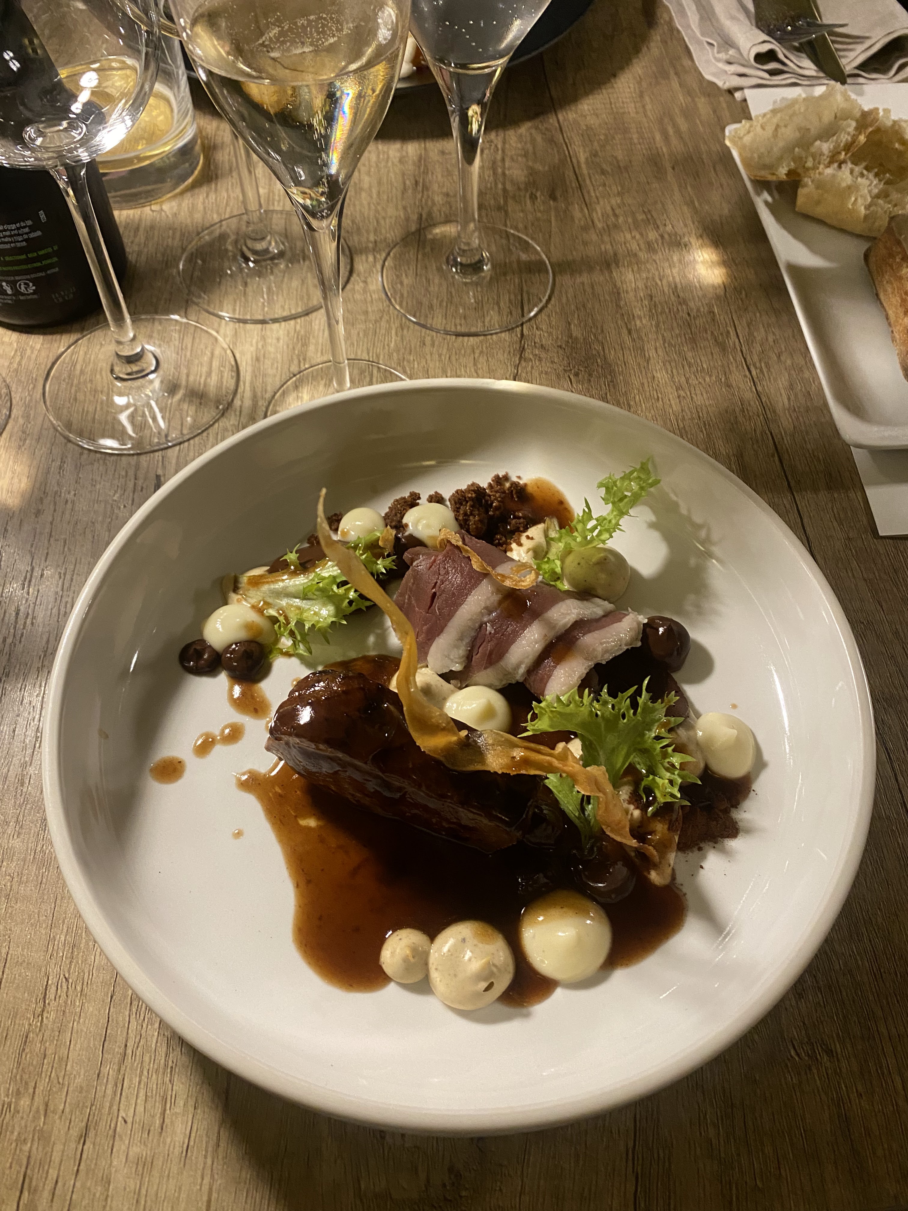 Bon repas, en entrée nous avons eu les asperges et la daurade très délicieuses. Les plats principaux étaient de la morue au poulpe et du magret de canard, tous très savoureux et nous avons terminé la soirée avec le dessert au chocolat. Vous voulez absolument essayer ce restaurant, mais assurez-vous de faire une réservation si vous envisagez de manger ici.