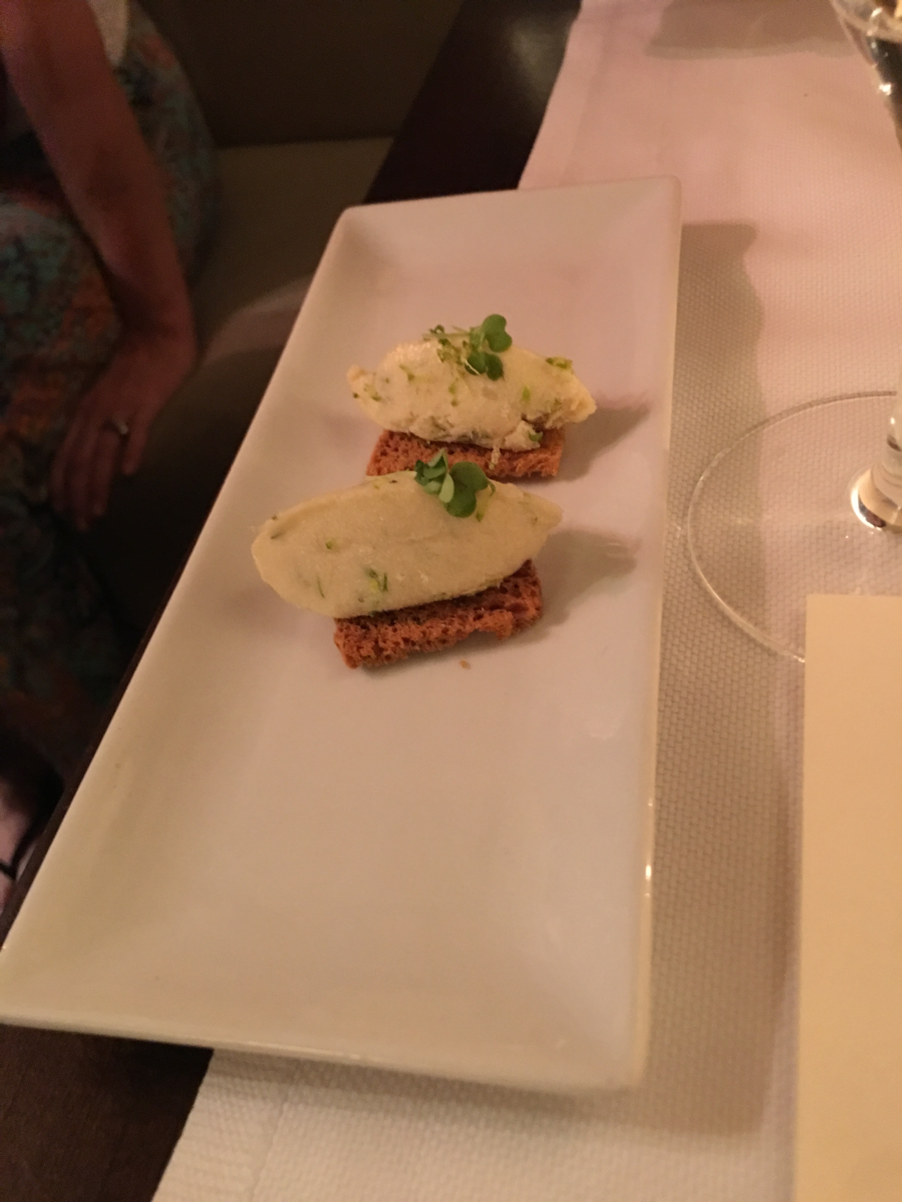 Excellent dîner pré-fixé (il existe 2 options de dîners et d'options au choix). Nous avons eu la chance d'avoir Mitch à notre service, ce que j'ai découvert à la fin du dîner. Ses suggestions concernant nos demandes de renseignements sur les meilleurs vins avec nos sélections étaient parfaites et nous prévoyons de visiter quelques-uns des vignobles à proximité mis en valeur par la carte des vins de Mitch. Dans l'ensemble, un dîner absolument merveilleux ! Recommande fortement.