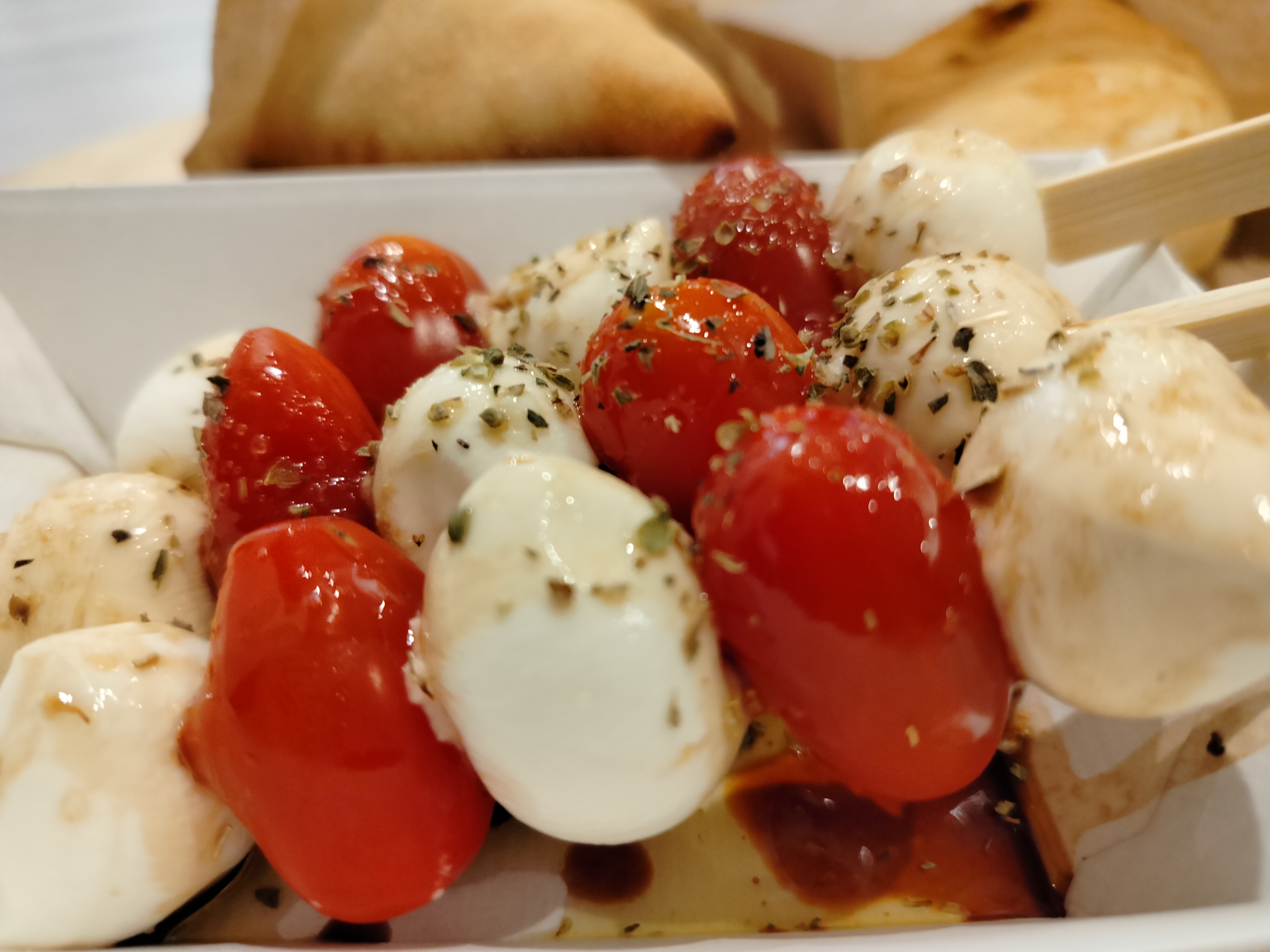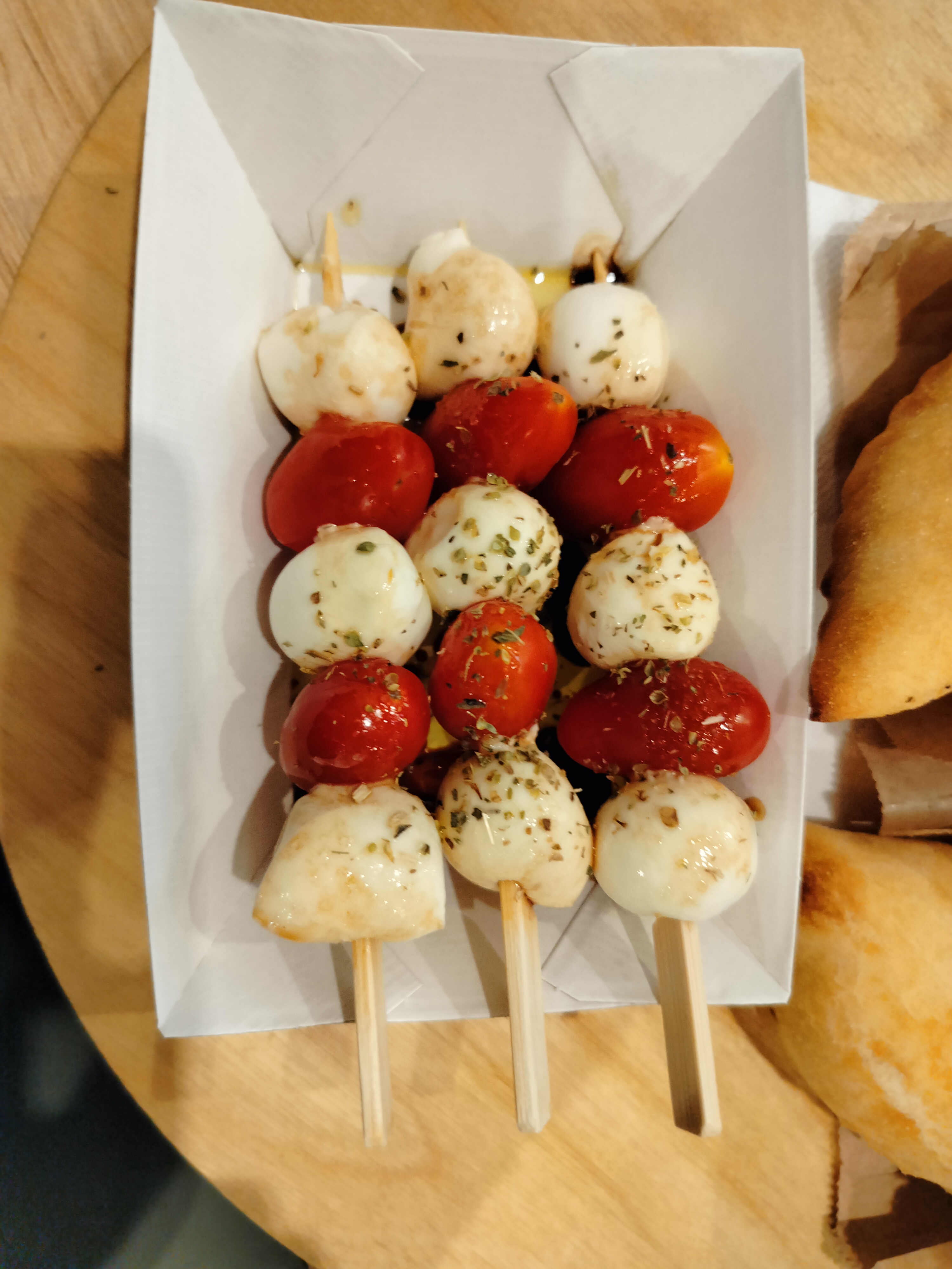 Vu au street bouche festival Panzaretto à moitié cuit , froid d'un côté 5E les 3 petites brochettes tomates mozza Dommage