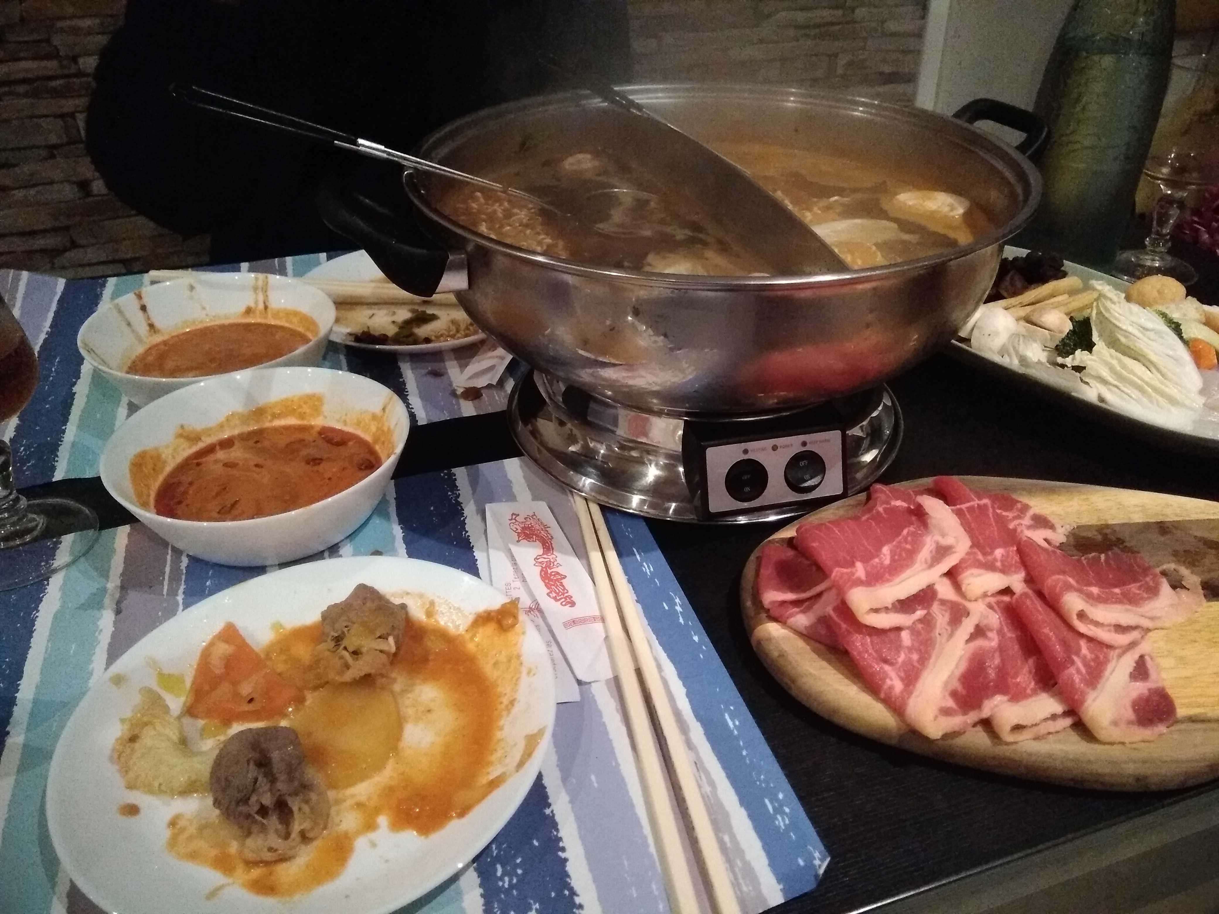 Bien pour ceux qui n’ont jamais goûté de vraies fondues chinoises. Pour ma part, le choix était trop trop restreint, bar à sauce aussi.