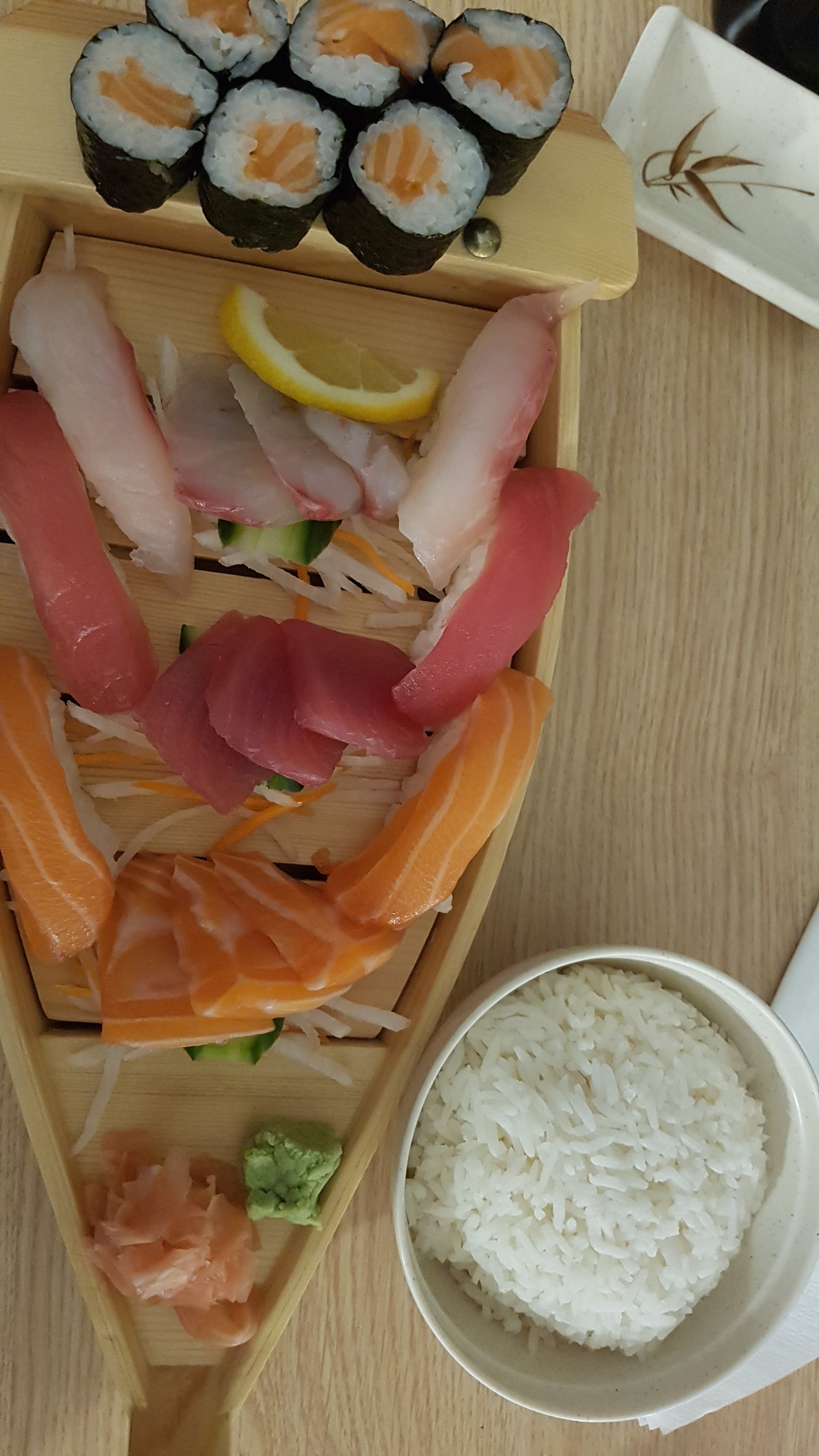 Commande à emporter, assez rapide et bons makis. Dommage qu'on ne puisse pas choisir du riz dans le menu.