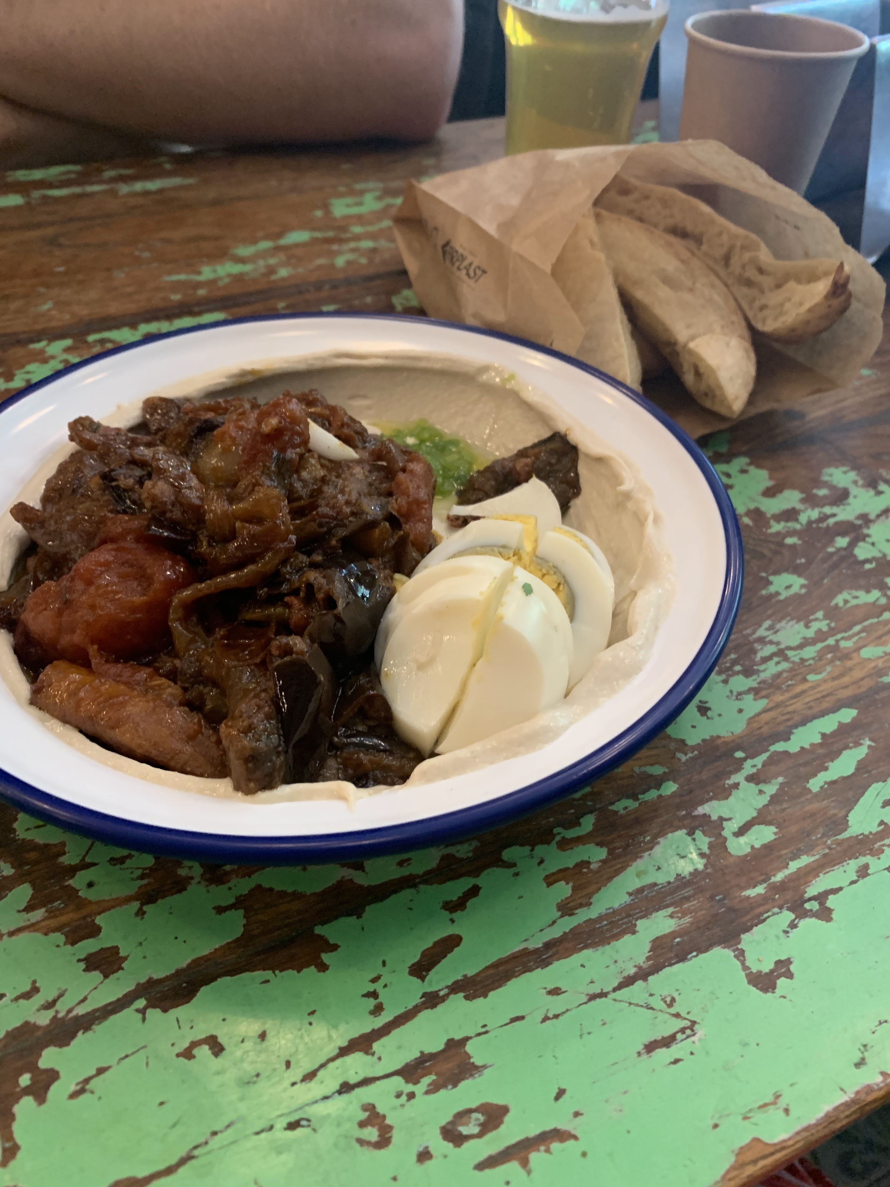 Options alimentaires fantastiques. Tahini gratuit ! J'ai adoré chaque assiette / pita que nous avons commandée. C’est bruyant et bondé alors soyez prêt pour ça.