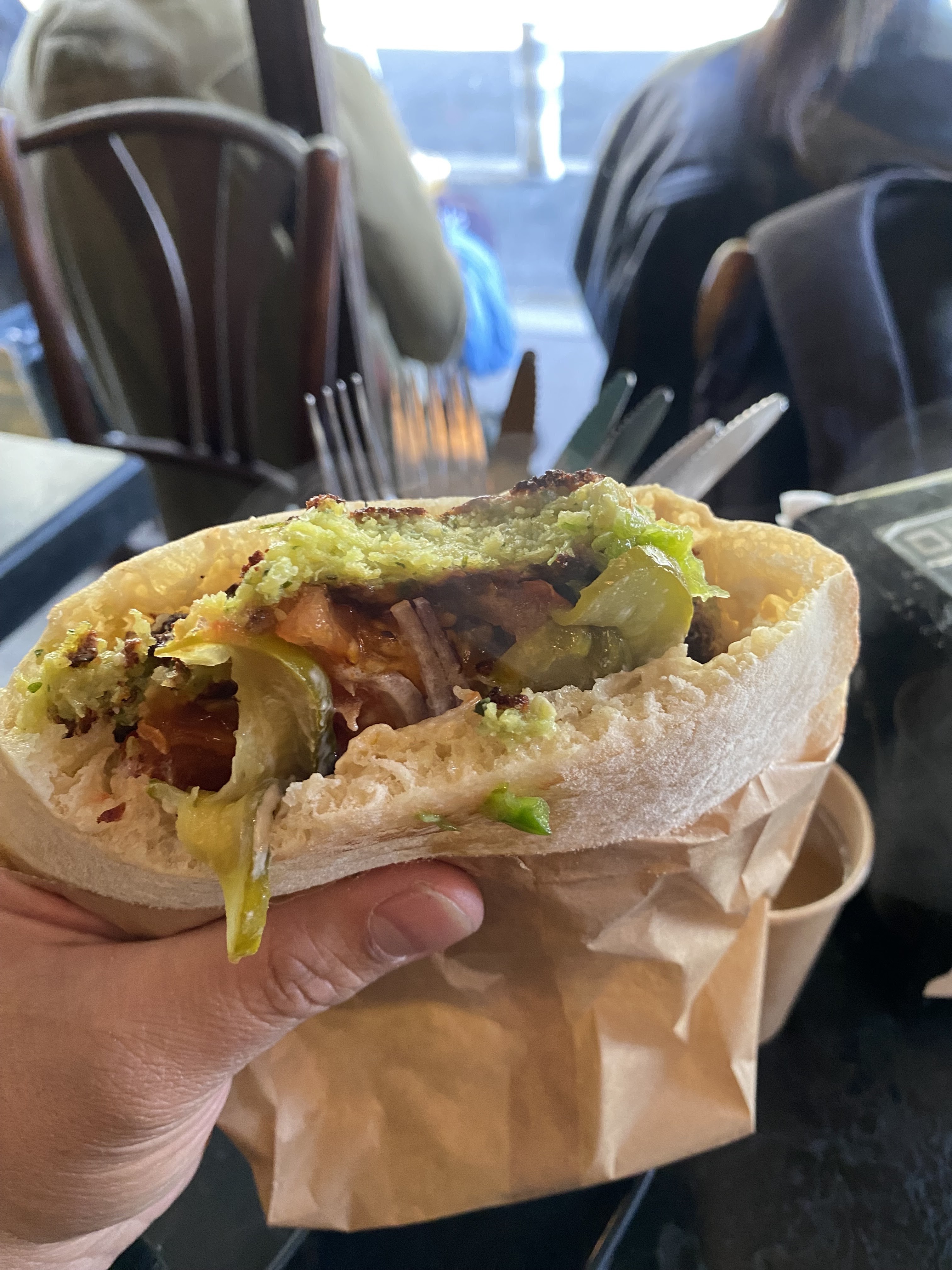 Bel endroit! Le pita d'agneau et le burger falafel étaient délicieux. Je reviendrai certainement
