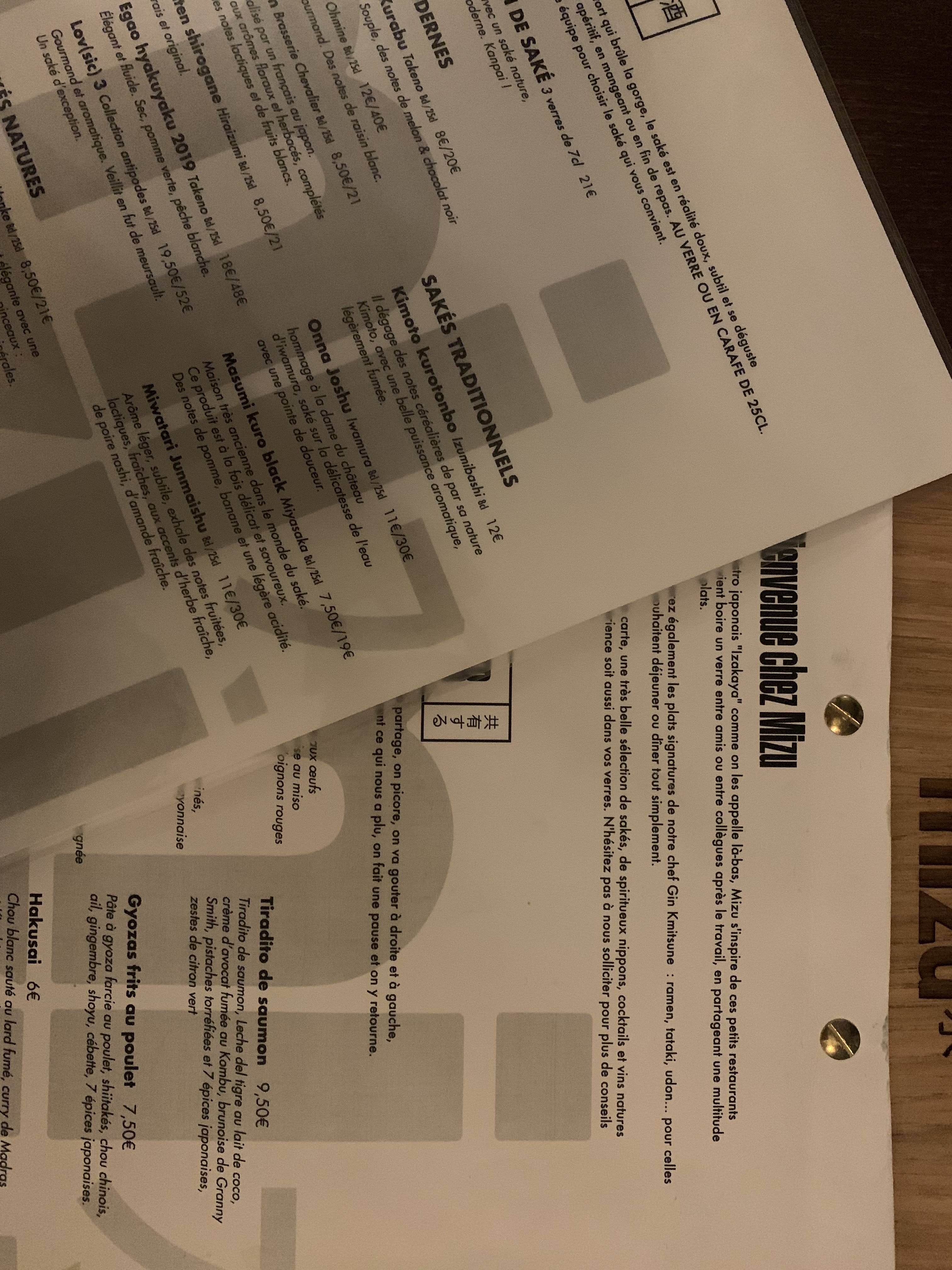 Incroyable expérience chez Mizu! Déjà par le cadre, la gentillesse et la bienveillance de tout le personnel sans exception, ensuite par la qualité et la fraîcheur des plats que nous avons mangés ! Les entrées à partager étaient très bonnes! Nous avons l'habitude de manger des ramens mais dans ce restaurant, elles étaient au top niveau !quand à la variété de saké à déguster avec les bons conseils de la personne en salle, c'était une belle découverte !Nous reviendrons très vite ☺