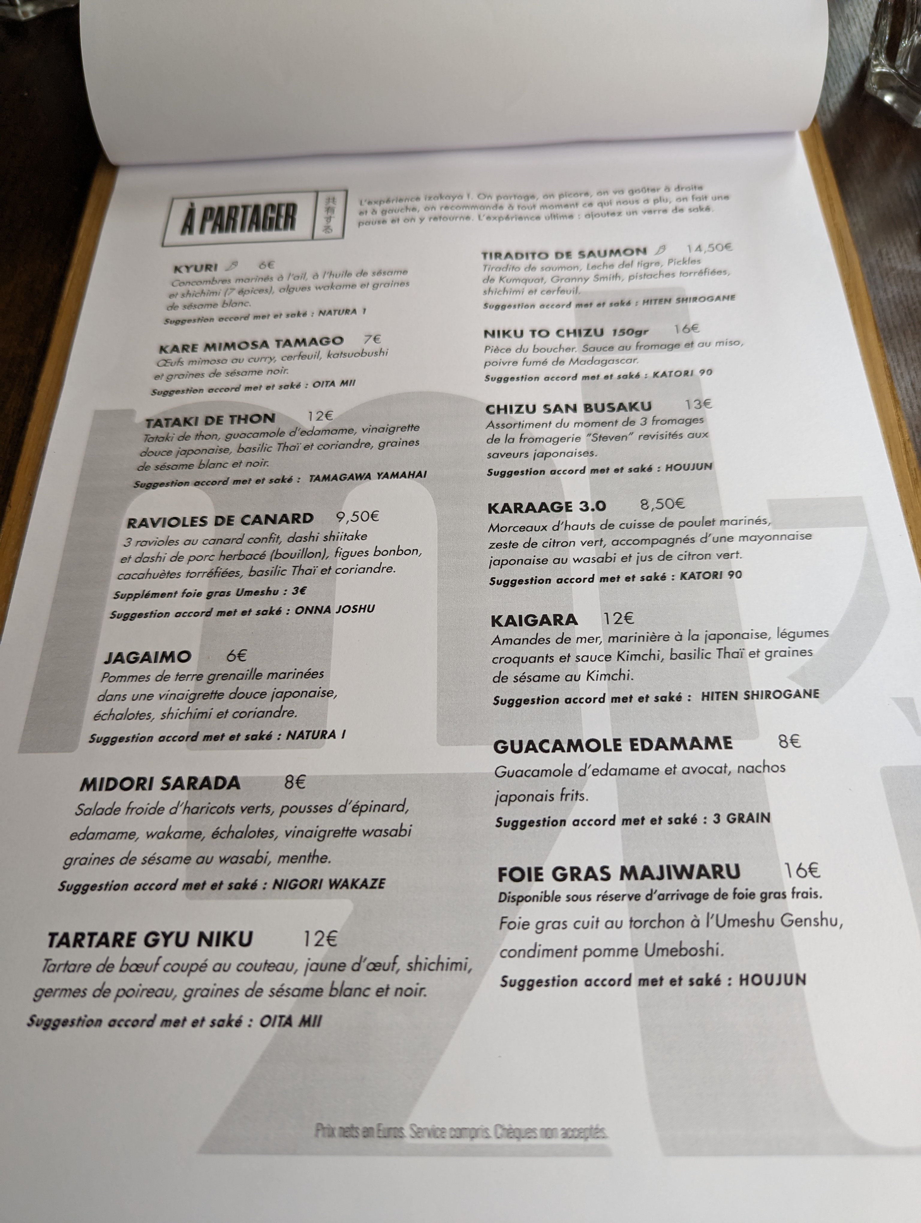 Si vous ne connaissez pas bien la cuisine japonaise vous allez découvrir une nouvelle offre éloignée des sushis et autres makis. Ceci est également valable pour les sakés très éloignés des stéréotypes que je connaissais. Tout est savoureux, à prix contenus et avec un service adorable. Je conseille à 100%.