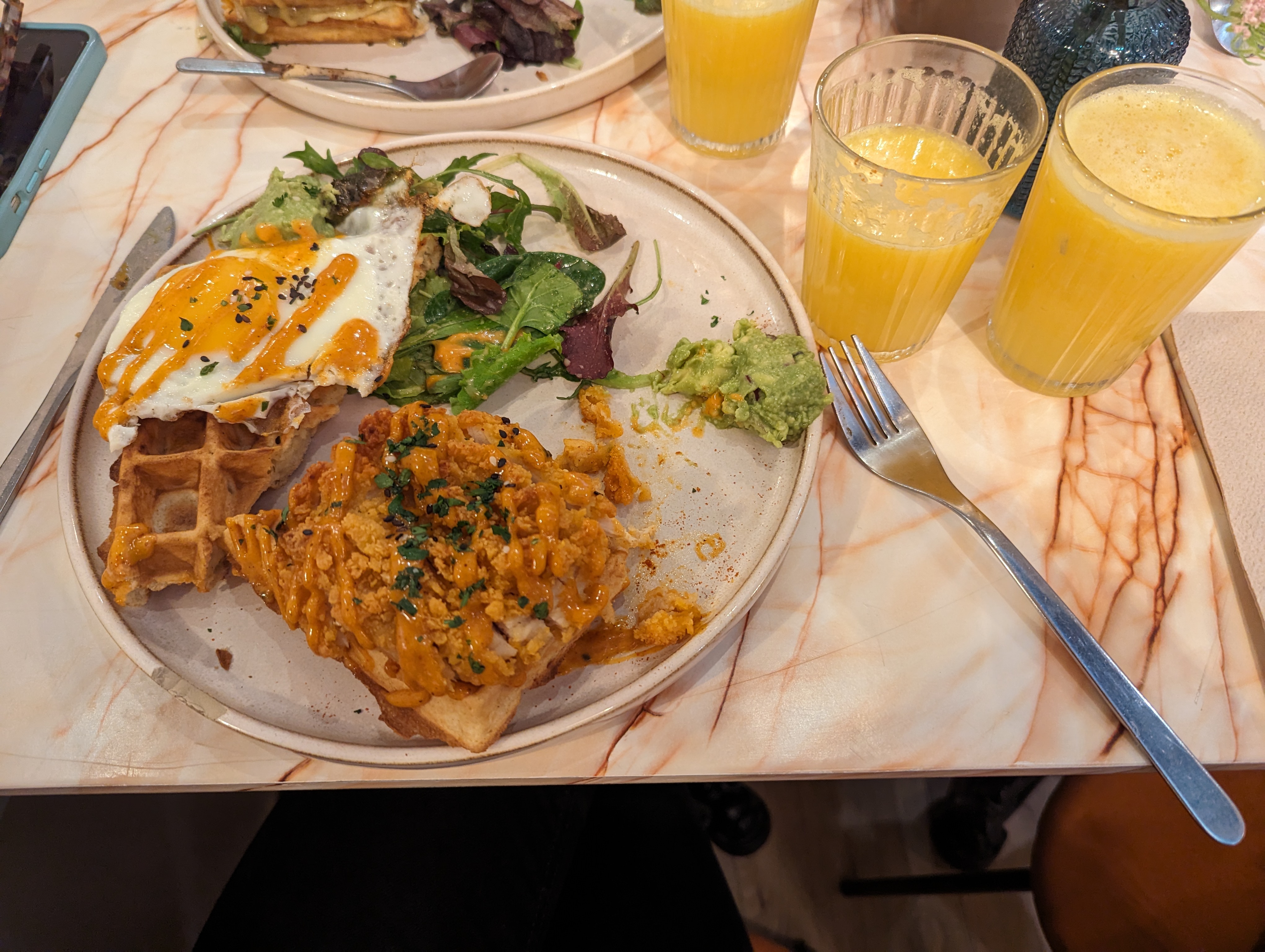 Des brunchs délicieux et copieux. Les gaufres ♥️ Bon service. Petit bémol : c'est très brouillant à côté de la cuisine où nous étions assis.