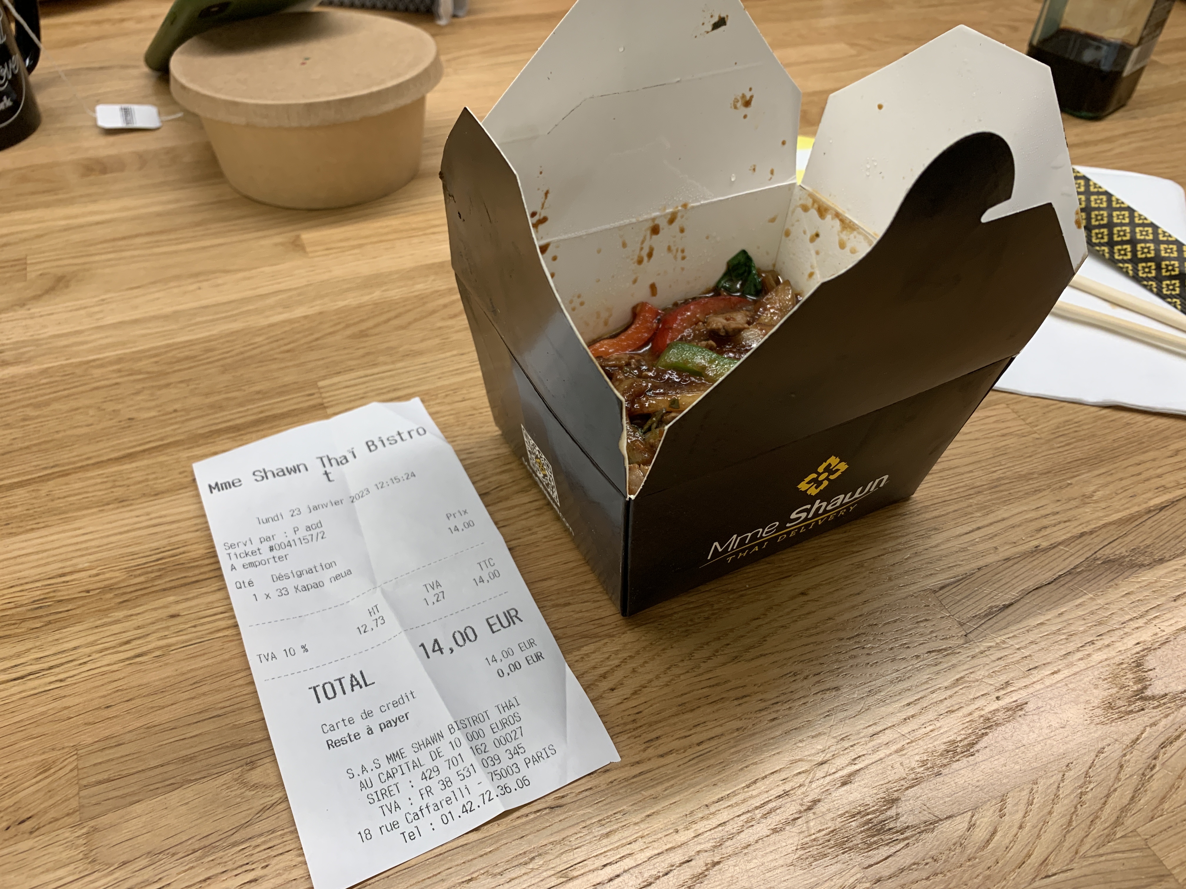 Les commandes prises sur uber eats se dégradent de façon lamentable. Surtout en semaine le midi. Les couverts et serviettes manquent. J'ai commandé un pad thaï: les nouilles baignent dans l'huile, les commandes ne sont pas respectées au niveau du piment (inversion de commandes avec ma femme), les légumes traditionnels du pad thaï sont remplacés par des légumes bas de gamme. Dommage