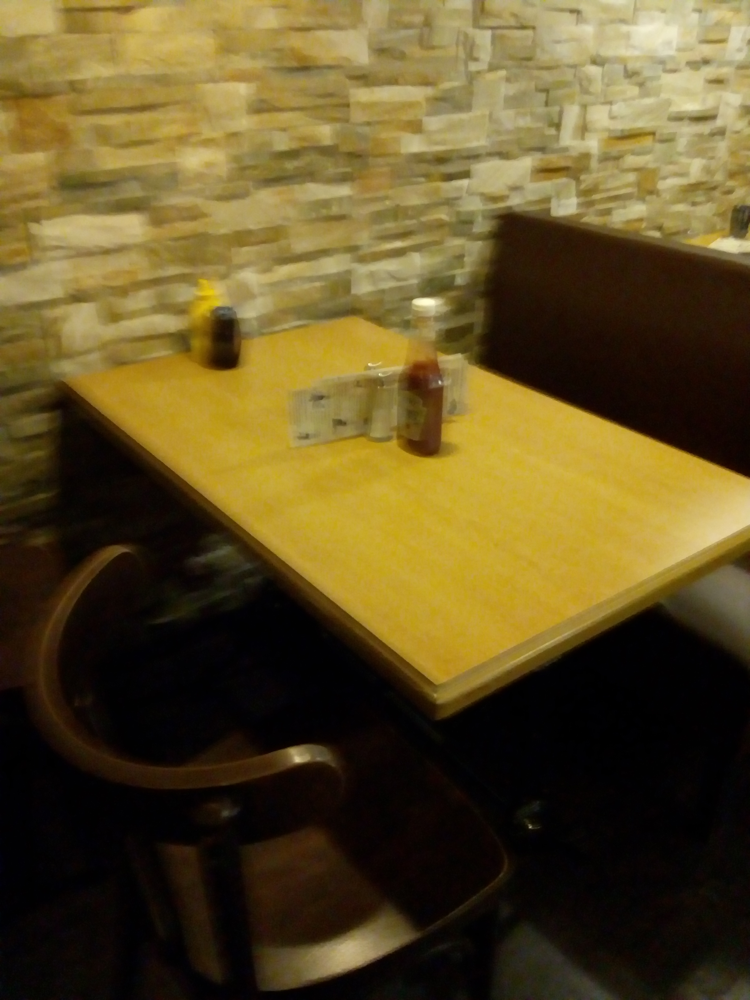 Nous étions installé face à un mur alors que des tables se libérait des gens arrivé après nous installés avant nous il a fallu demandé pour changer de place. Les frites ne sont pas fait maison, hamburgers bons mais pas extraordinaire non plus! Serveur quand même gentil et souriant c'est pas rien !
