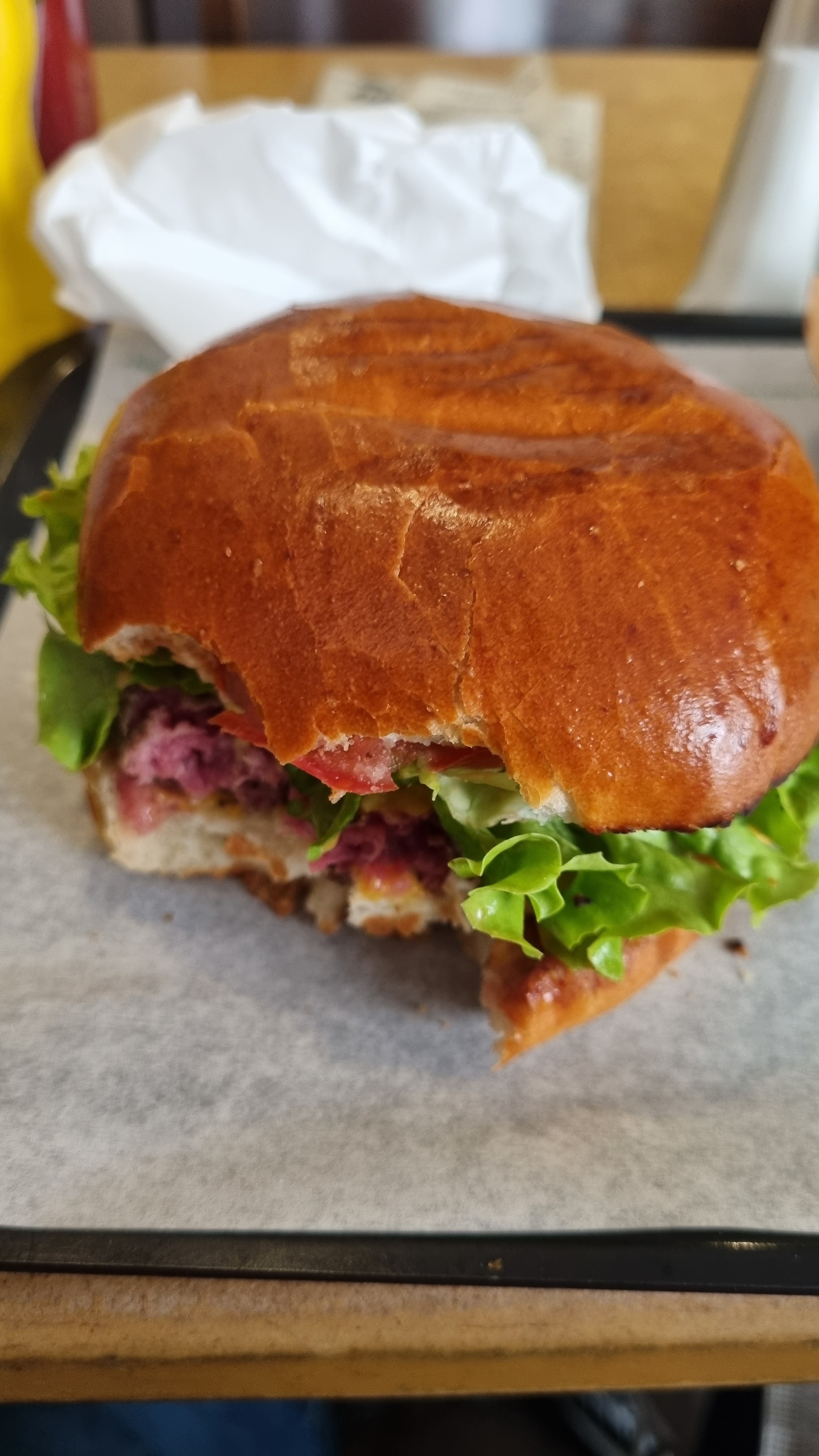 Les burgers y sont délicieux (en plus de tous exister en version végétarienne). Les frites maisons sont très bonnes aussi. J'ai été très agréablement surpris que le serveur remplisse la carafe d'eau sans que nous ayons besoin de demander. Un poil déçu d'avoir bu dans des gobelets en plastique. En plus d'être une aberration écologique, un des 4 gobelets que nous avions donnait à l'eau un goût de plastique. Je recommande vivement.
