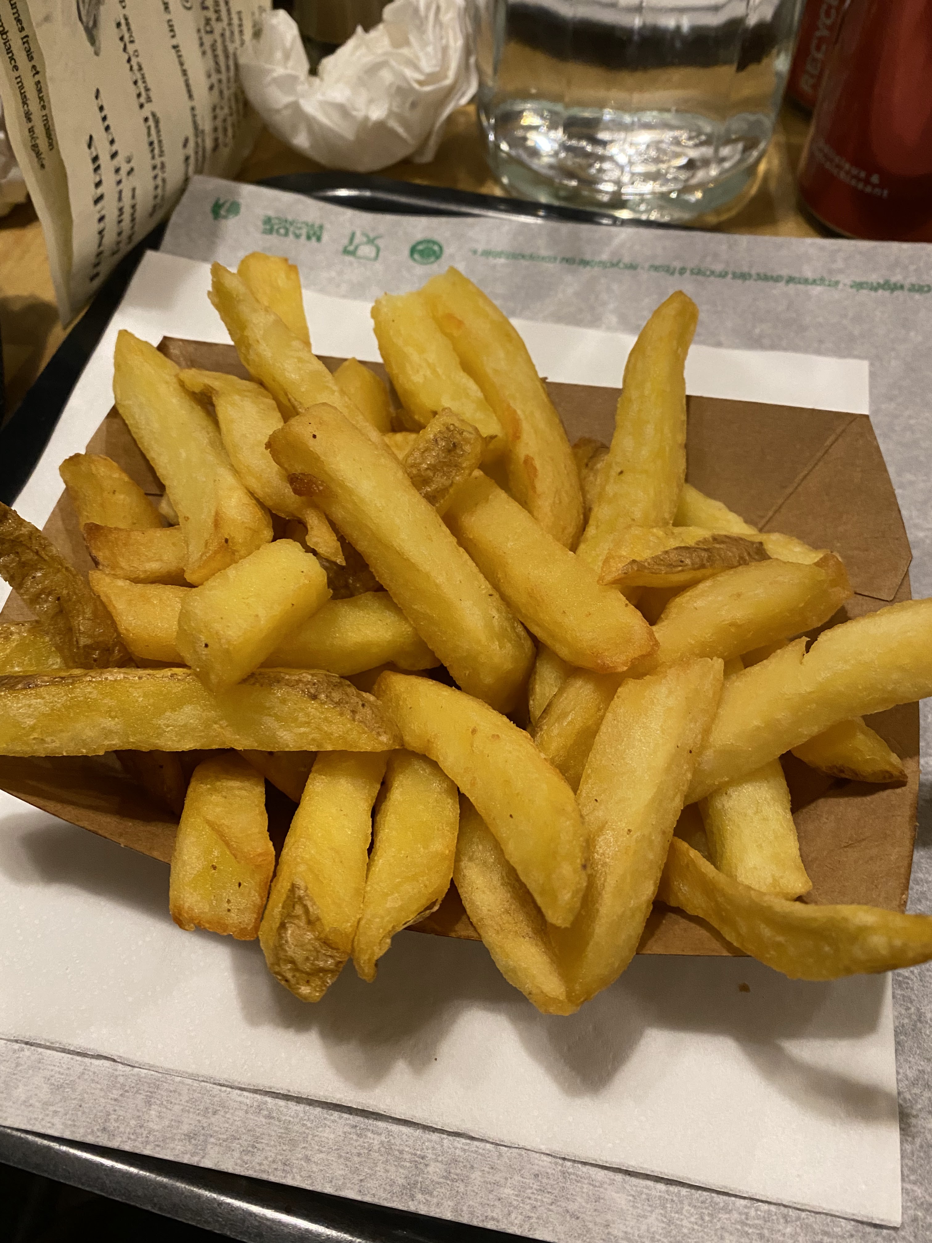 Les frites furent excellentes. Mon burger commandé saignant est arrivé trop cuit. Dommage. De plus j'ai trouvé le diamètre du burger un peu petit. Le rapport qualité/prix reste bon