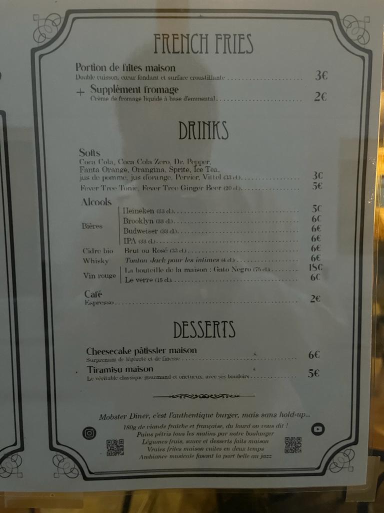 C’est la deuxième fois que je vais manger au Mobster Diner et c’est toujours aussi bon ! Les burgers sont délicieux et très copieux, l’ambiance est vraiment sympa !