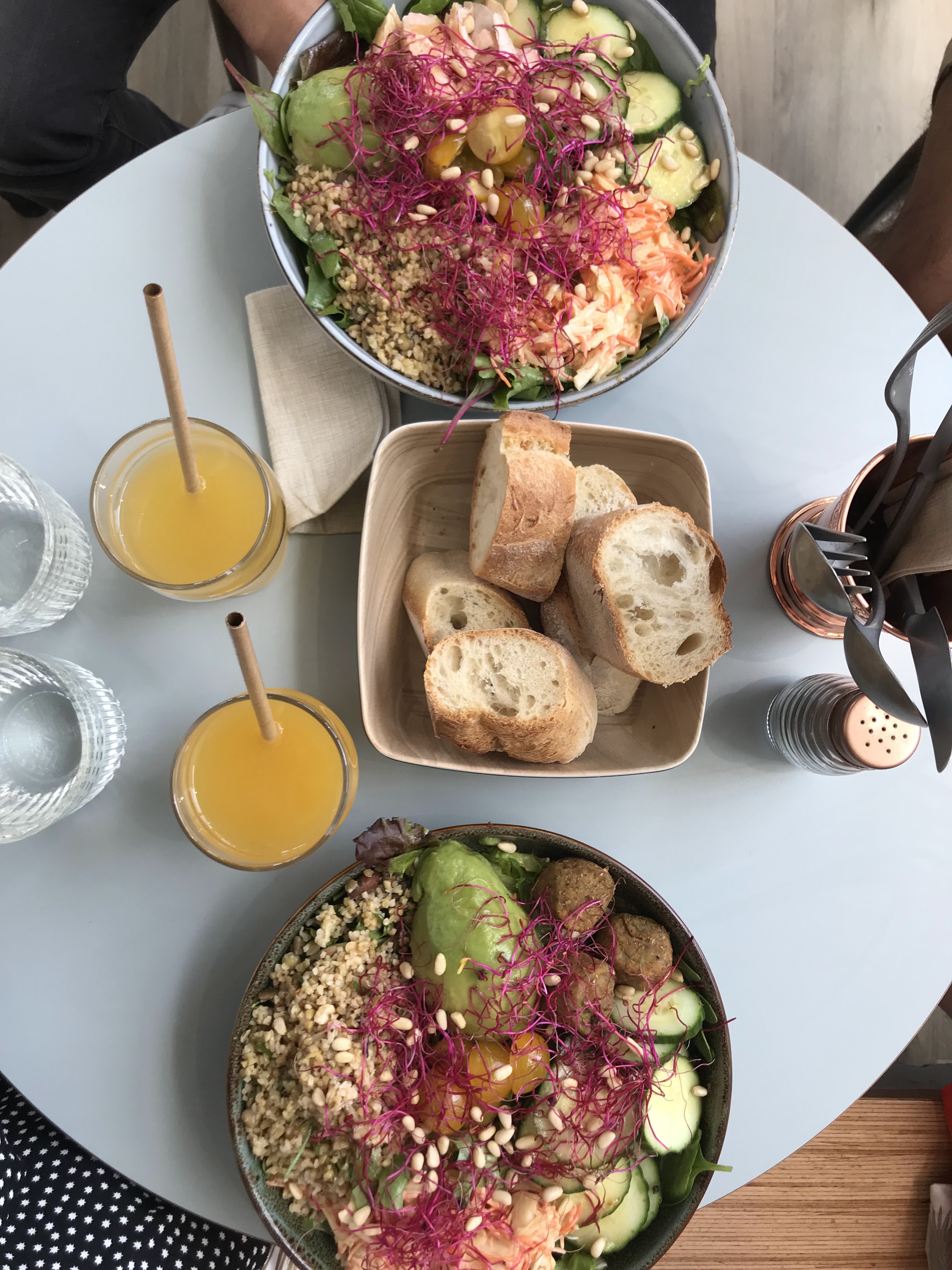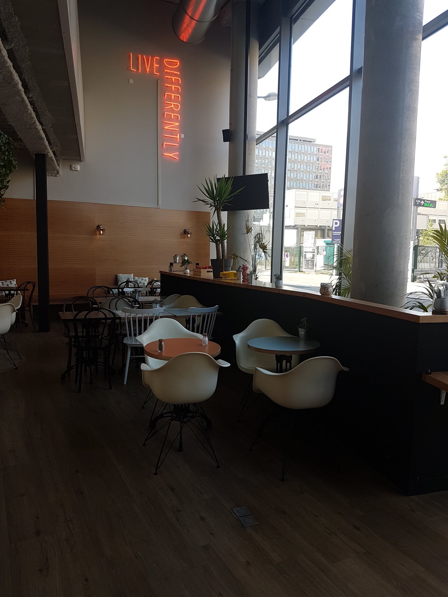 Super restaurant/café, un large choix de boissons chaudes/froides et de plats sains, pour tous les goûts. Un espace très grand, et lumineux, pour les repas entre amis, pour aller travailler, ou pour des rendez-vous professionnels. Seul bémol, j’ai trouvé le personnel très froid et méprisant, c’est dommage.