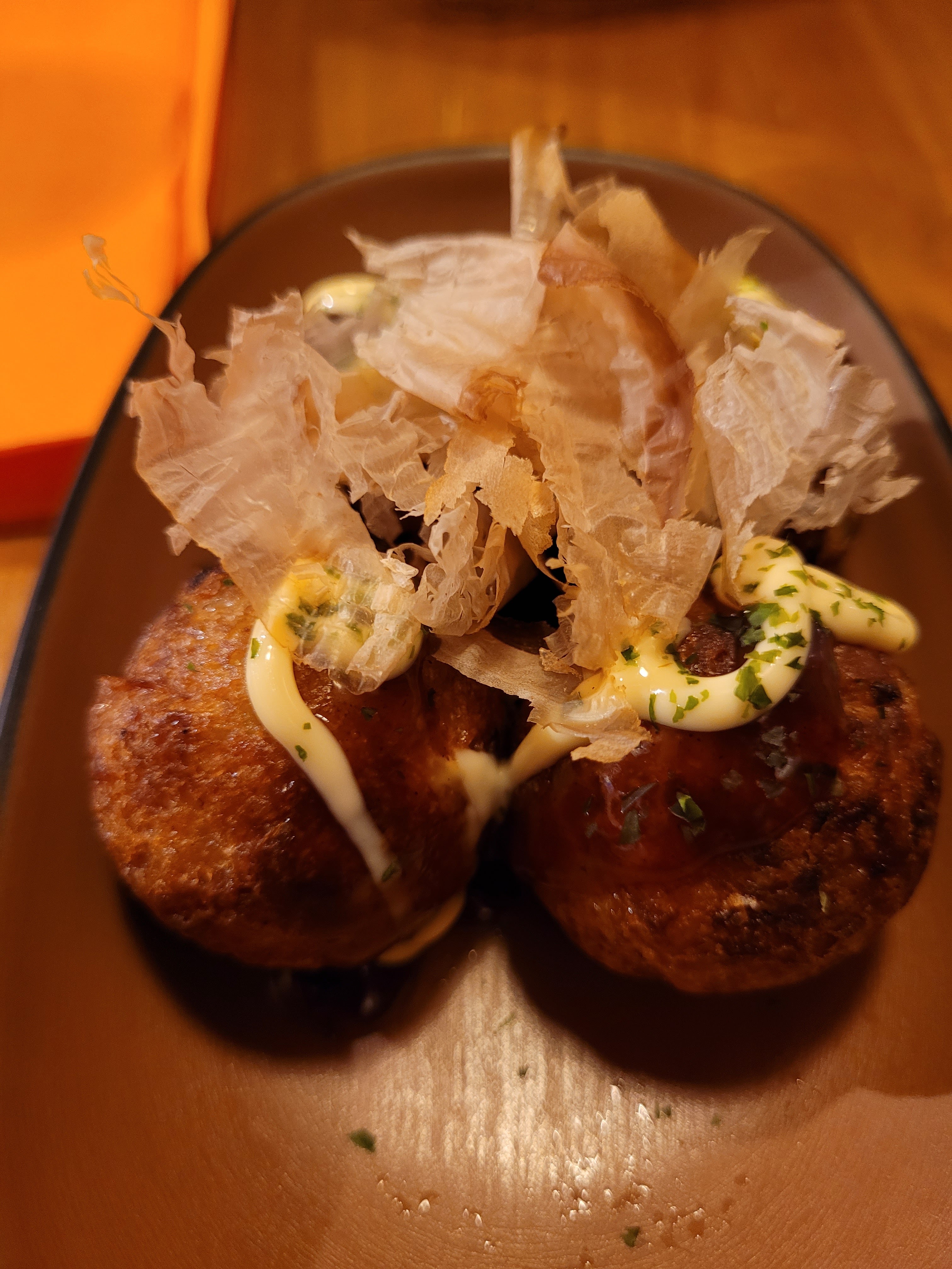 Les takoyaki sont incroyable, sortant tout juste de la poêle spéciale, réaliser sur place par le chef Fondant à l’intérieur, un délice pour les papilles. Le ramen , et les plats étaient aussi très bon. Il faut y venir tôt car c’est vriament un restaurant incontournable ✨