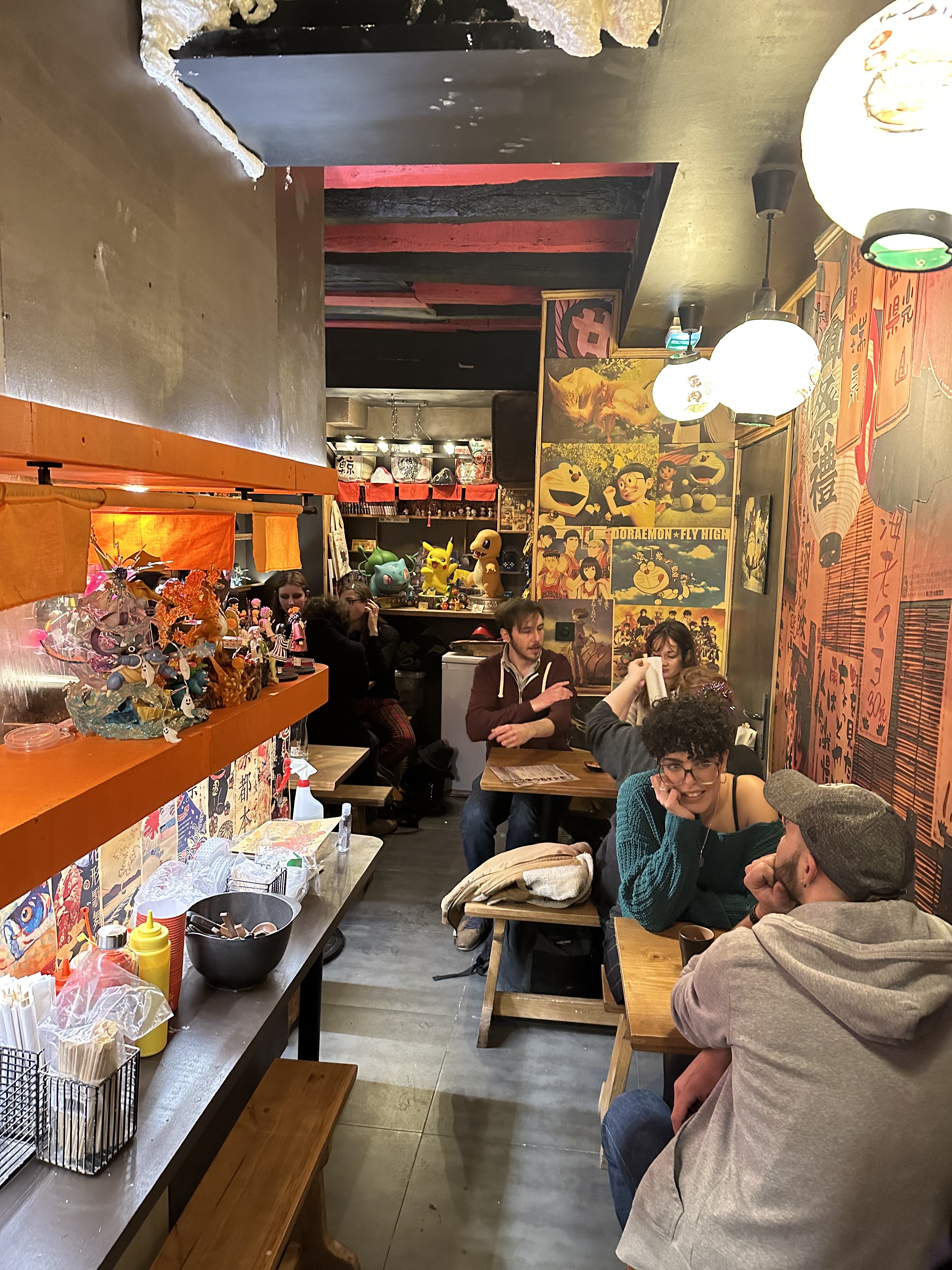 Petit restaurant sympathique avec une décoration plutôt cool. Il y a pas beaucoup de place donc il faut venir tôt ou réserver, le service est courtois mais sans plus. Les plats sont pas mauvais même si pour ma part j’étais déçu par le Ramen au porc qui n’avait pas de goût. Les takoyakis sont bons mais pas les meilleurs que j’ai goûté.