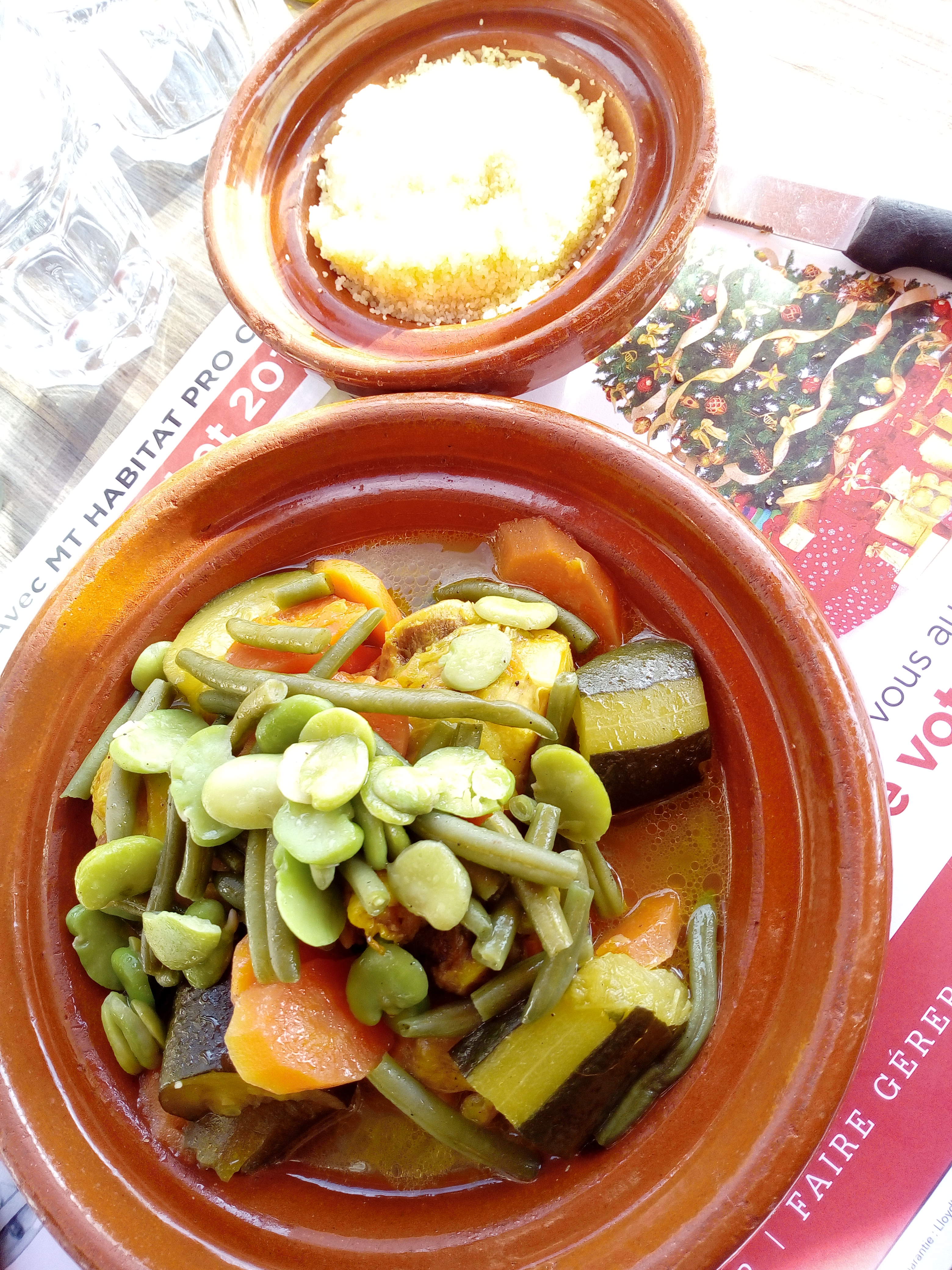 Leur cuisine est très goûteuse : nous avons commandé un tajine royal à l'agneau et aux 7 légumes et une pastilla. On s'est régalés !