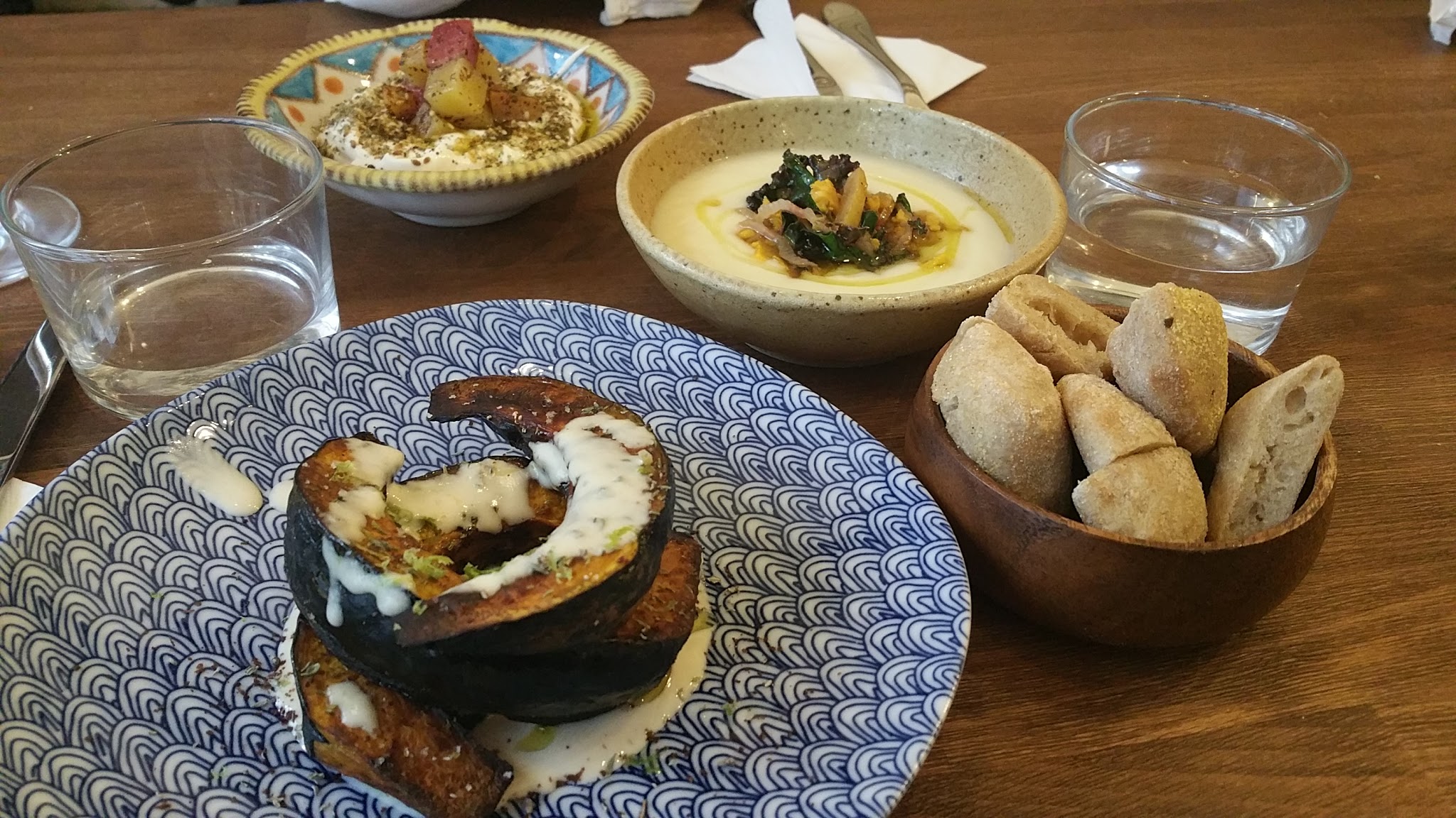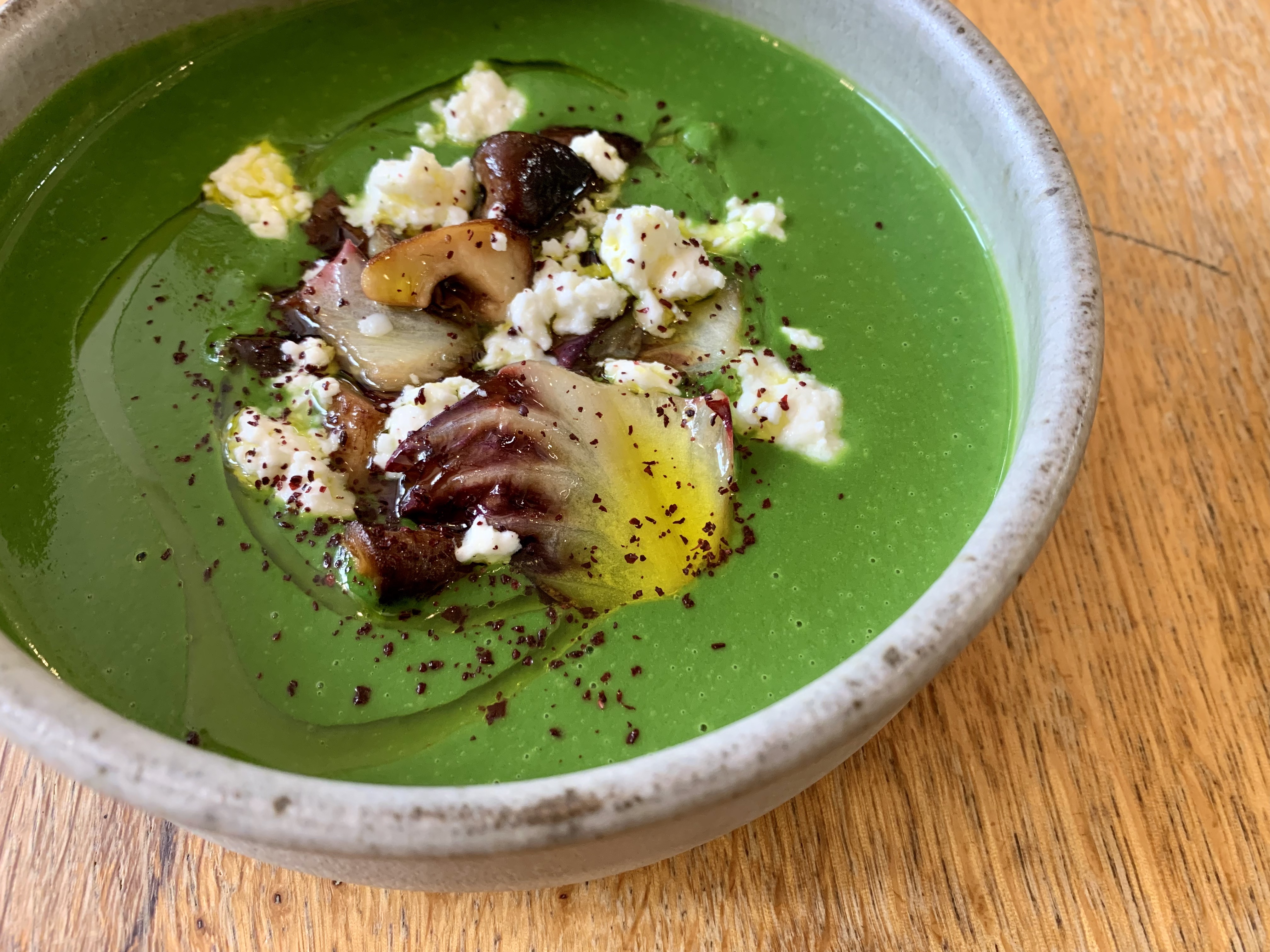 Un menu à la craie écrit à la main tourne sur un petit tableau noir. Il n'y a pas beaucoup de choix et un groupe de 2 personnes peut probablement tout essayer au menu, mais chaque plat de la journée est cuit à la perfection et délicieusement divin. Le za’atar labneh n’est probablement pas l’apéritif le plus récurrent, crémeux, onctueux et plein d’épices. La soupe aux épinards avec shiitake grillé et feta m'a vraiment époustouflé, veloutée et légèrement fumée. La viande de caille était très tendre et fondait presque dans la bouche. J’ai été rassasié de manière satisfaisante par tous les plats salés et je n’ai malheureusement laissé aucune place pour le dessert. Mokonuts est définitivement celui que je revisiterai à mon retour à Paris. Le moment venu, je me le rappellerai : gardez de la place pour leurs cookies !
