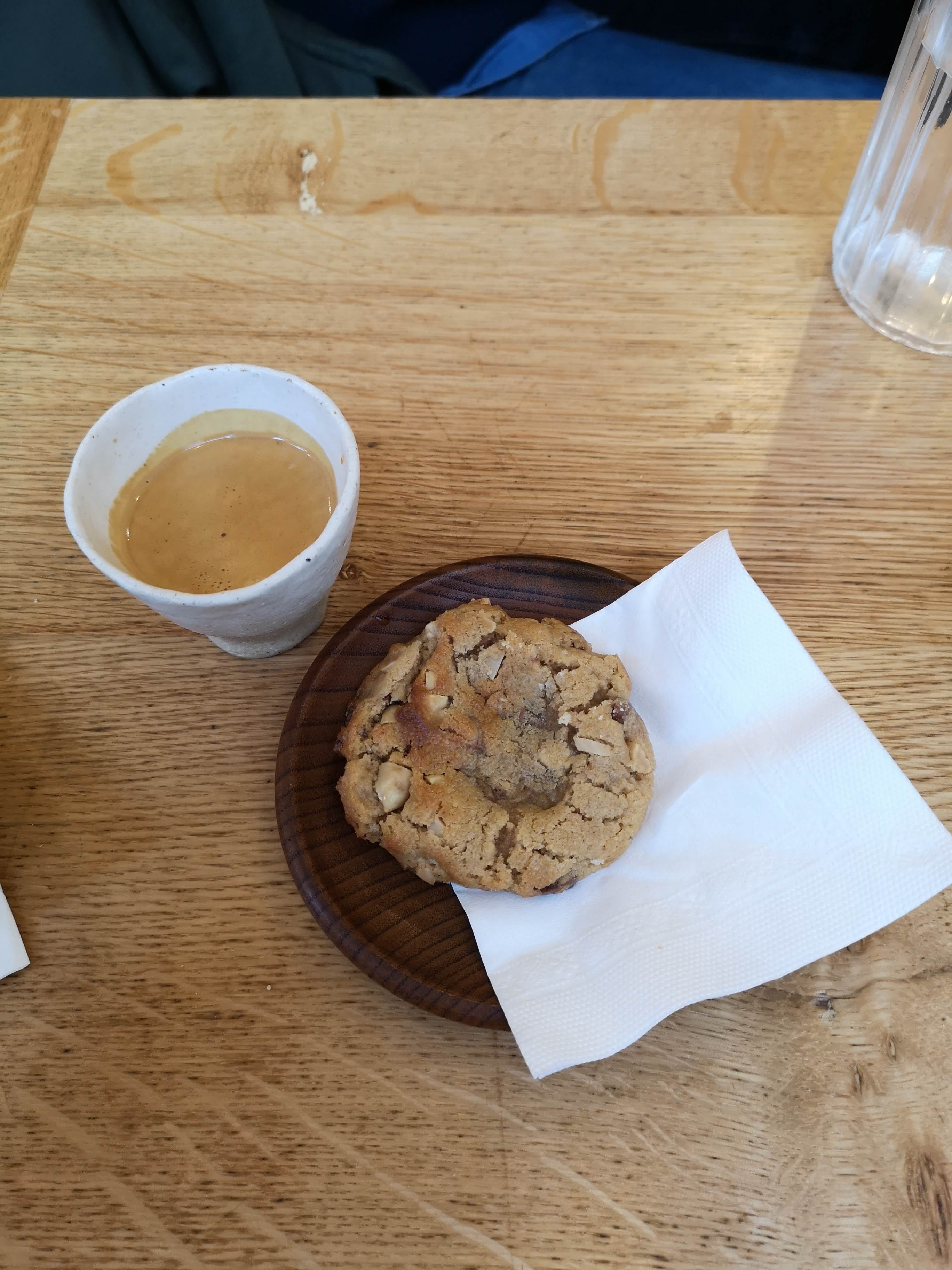 Très belle accueil, propriétaire très sympathique, café très bon et cookie beurre de cacahuète très bon aussi, juste j'aurai aimé que le cookie soit un peu plus grand