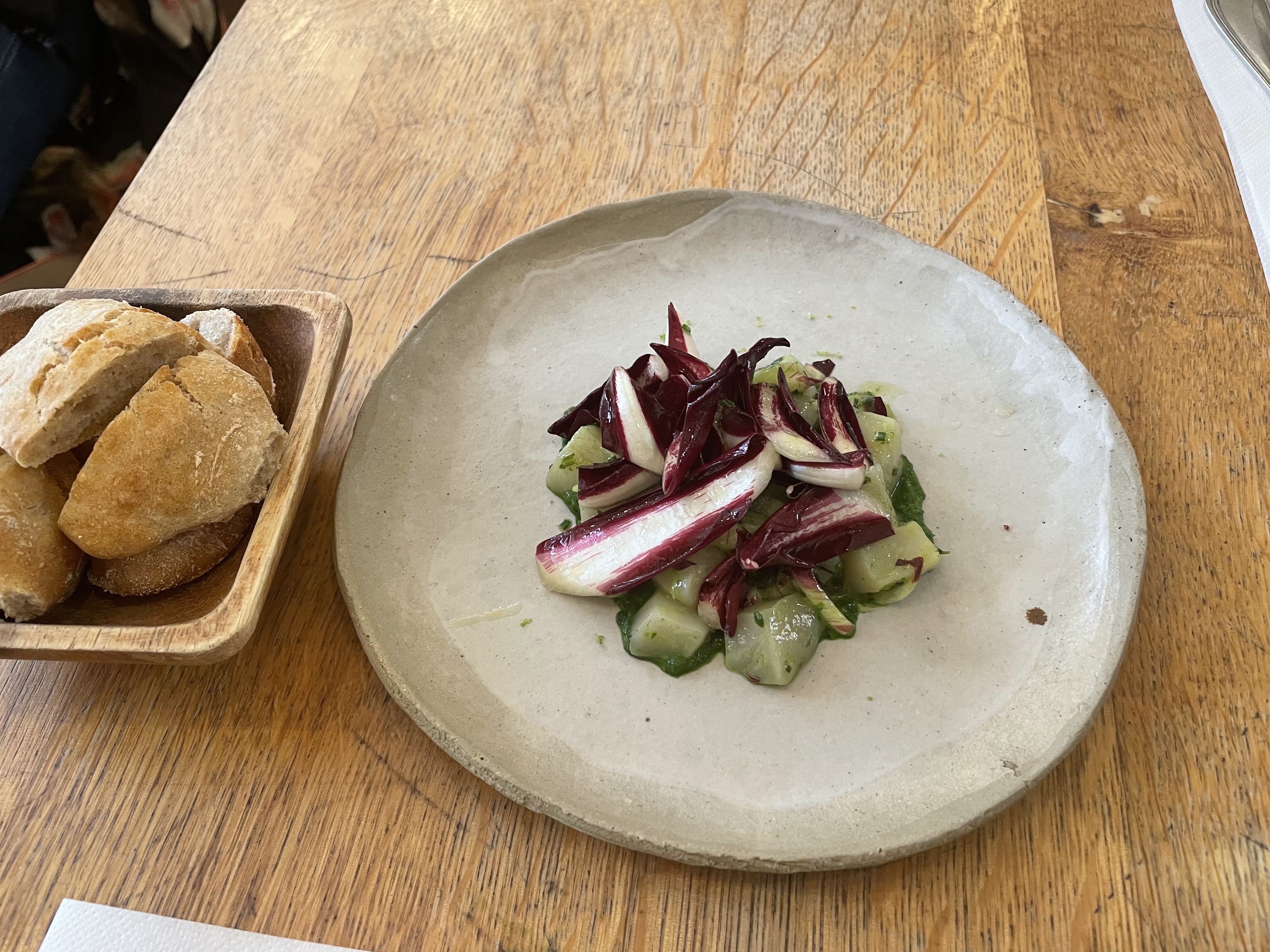 J'y suis allé pour le déjeuner et je n'ai pas été déçu. Une excellente cuisine dans un cadre sans prétention. Chaque plat était parfait. Les vins naturels sont également très bons. J'aurais mangé ici encore, si nous pouvions prendre une table. Au cours de notre déjeuner de deux heures (réservé longtemps à l’avance), nous avons vu au moins 4 groupes refoulés. L'endroit est minuscule, il est donc indispensable de réserver. Vous ne pouvez pas vraiment entrer et espérer avoir une place.
