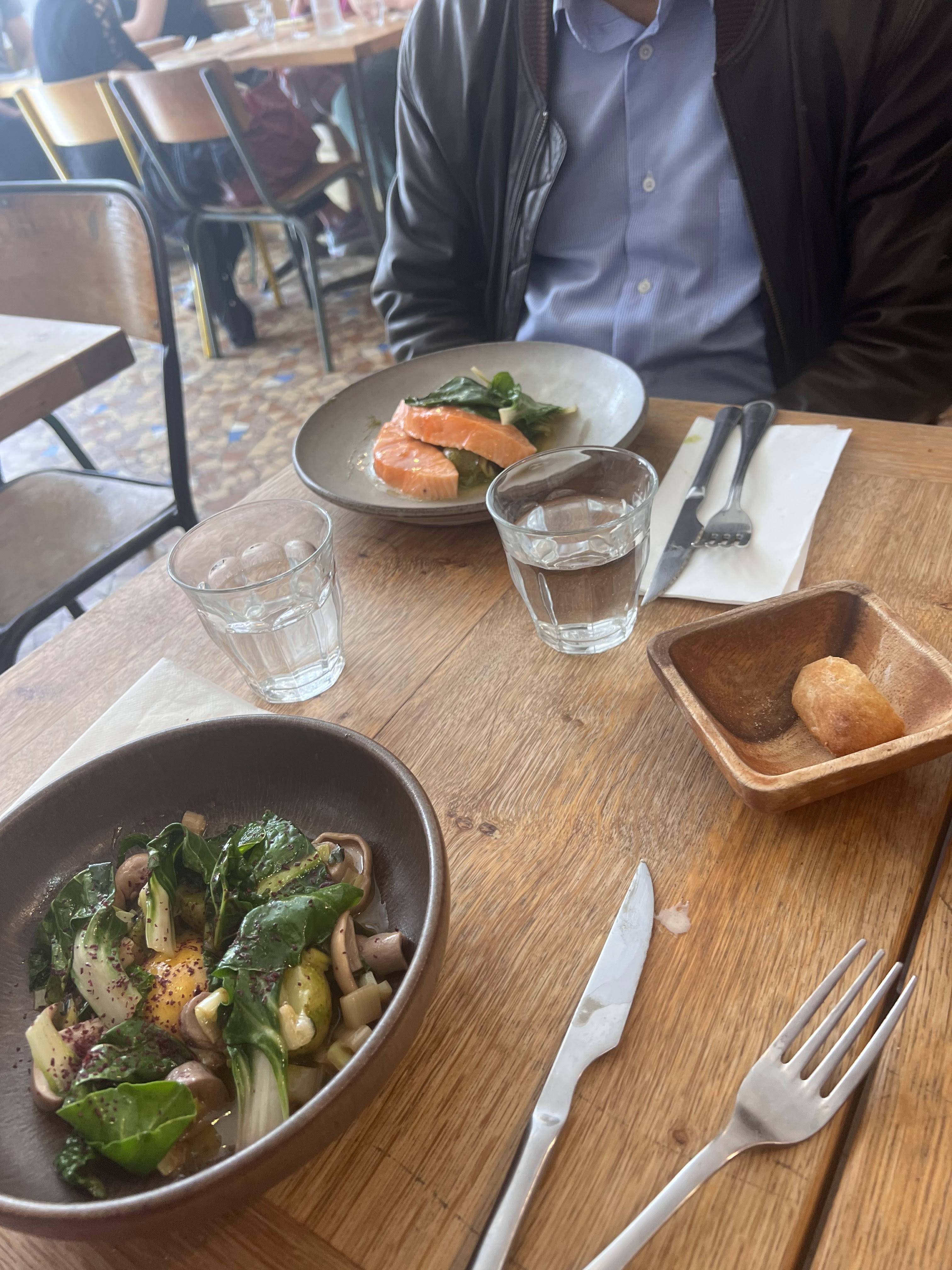 Le déjeuner chez Mokonuts était un repas préféré à Paris ! La nourriture est vraiment incroyable - nous aurions aimé avoir tout commandé sur le menu. Pensez à réserver à l'avance, même pour le déjeuner. Ça vaut vraiment le trajet en métro à travers la ville !