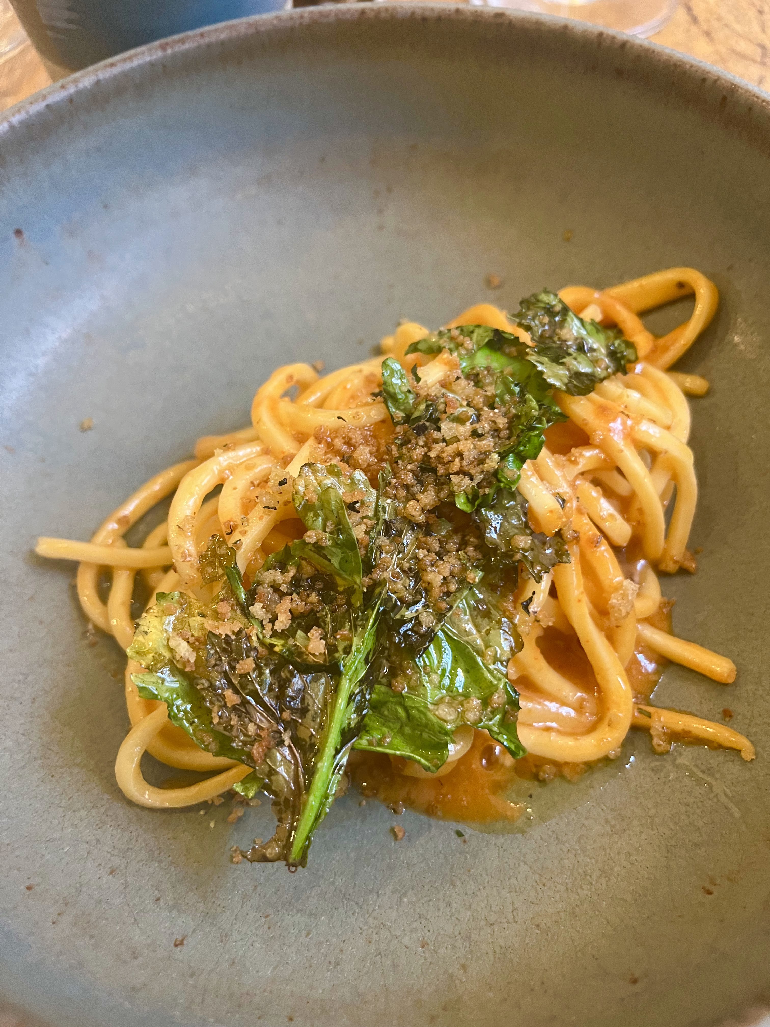 Nous avions eu tellement de recommandations pour Mokonuts pour notre voyage à Paris et avons eu beaucoup de chance d'obtenir une réservation. Nous avons un peu hésité en arrivant, mais comme on s'est vite trompé ! La nourriture était incroyable, parmi les meilleures que nous ayons eues pendant tout le voyage. Mais le meilleur, c'était le service. Sans aucune invitation, on nous a proposé de tester deux vins, son anglais était immense et sa communication sur la nourriture était inspirée. Un déjeuner incroyable et spécial.