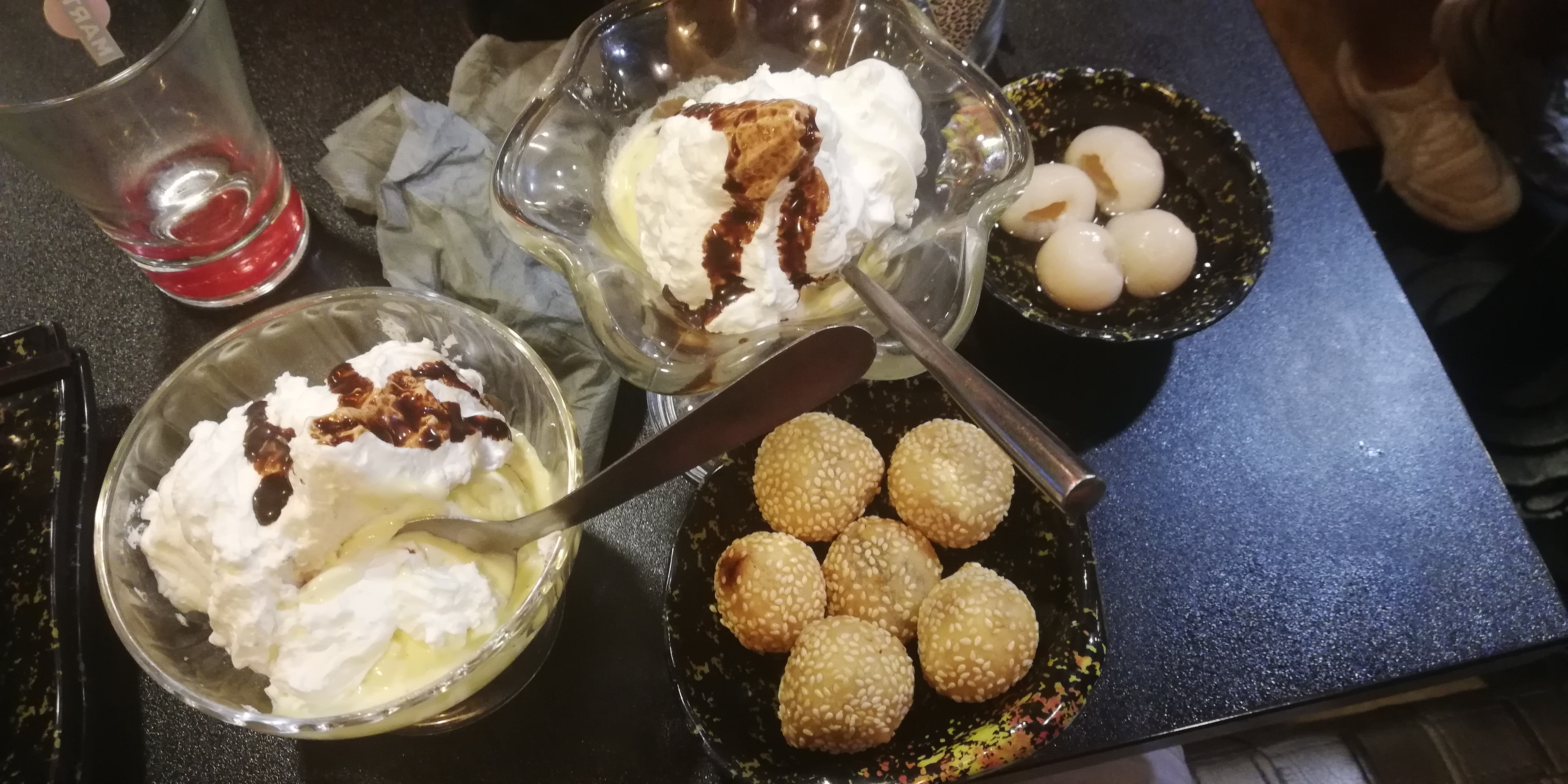 Restaurant asiatique... J'ai fait comme beaucoup de personnes, regardé sur le site pour me faire une idée... Mardi soir je suis allé manger la bas. Arrivé. Un très bonne accueil la serveuse ma amène à ma table et ma donné toute les explications et ma dis comment marché le restaurant ( lutte contre le gaspillage alimentaire ) voici une très bonne chose pour un resto. Alors Oui c'est Vrai que c'est pas mâle leur système de tablettes en gros vous pouvez commander toute les 8 minutes 5 plats, j'ai goûté beaucoup de choses et en déserts j'ai pris une Dame blanche ( voir les photos ) Rapport qualité prix : plutôt bien. Côté négatif : Très dessus sur la partie des déserts que 5 choses. Vous avez le choix entre Vanille Vanille ou Vanille donc pas la possibilité de choisir le parfum de votre glace. Dommage 🤔 Il me semblerait judicieux de mettre plus de choix après avoir bien mangé... quelques photos sur l tablette ne correspond pas au produits que l'on vous apporte a table. Dernière chose ou j'ai était dessus : Mantou a la crème ça n'a aucun goût si d'huile dommage 🙁