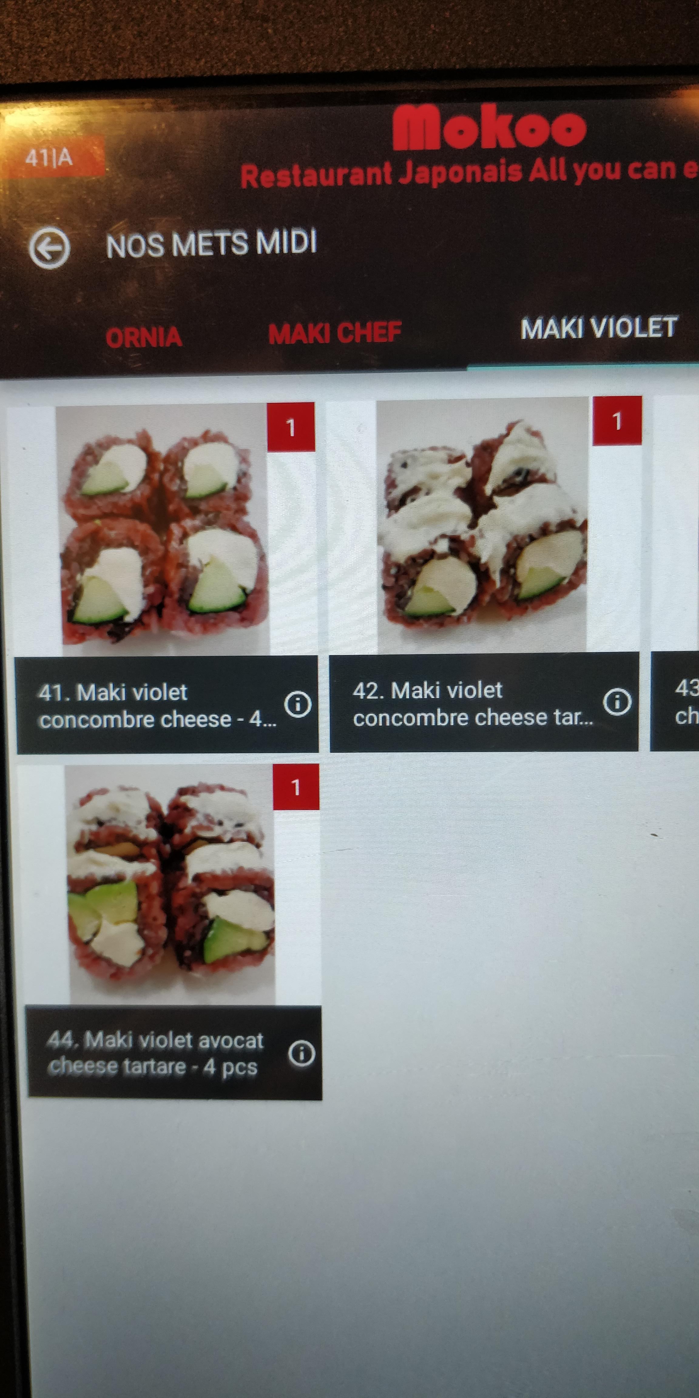 Un restaurant japonais avec un super concept. La carte est directement sur tablette tactile , ce qui permet d'avoir un visuel de ce qu'on commande. Attention quand même , des fois les visuels sont trompeurs. Les plats sont bons, et la possibilité d'en commander à volonté est plutôt pas mal (il y a un délai entre deux commandes ). Côté dessert par contre , ce n'est pas top face a la concurrence mais bon le reste rattrape vraiment ce manque.
