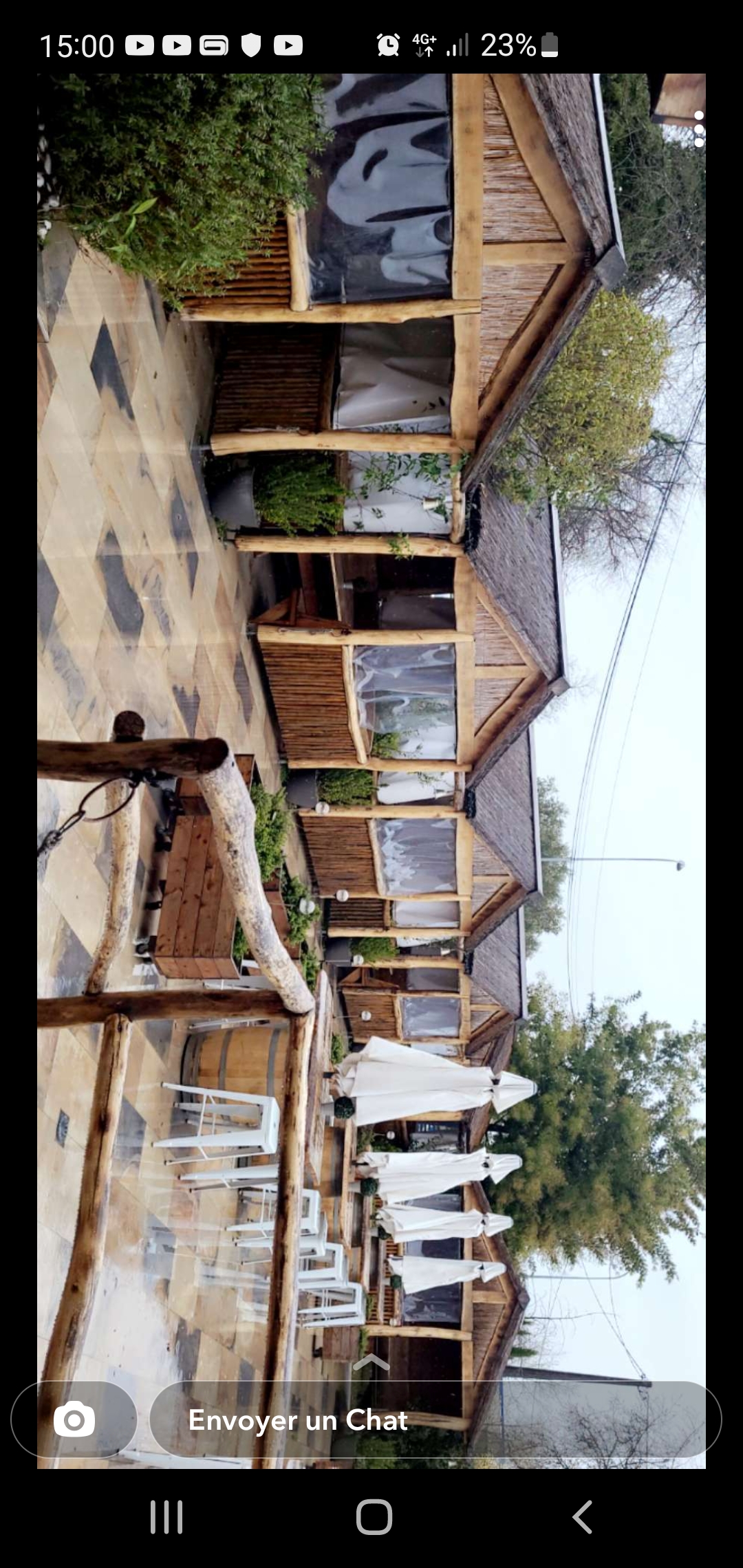 Petite cabanes en extérieur tres agréables ou il fait bon manger si l'on ne veux pas être en salle Très bon menu du jour a très bon prix Bonne cuisine