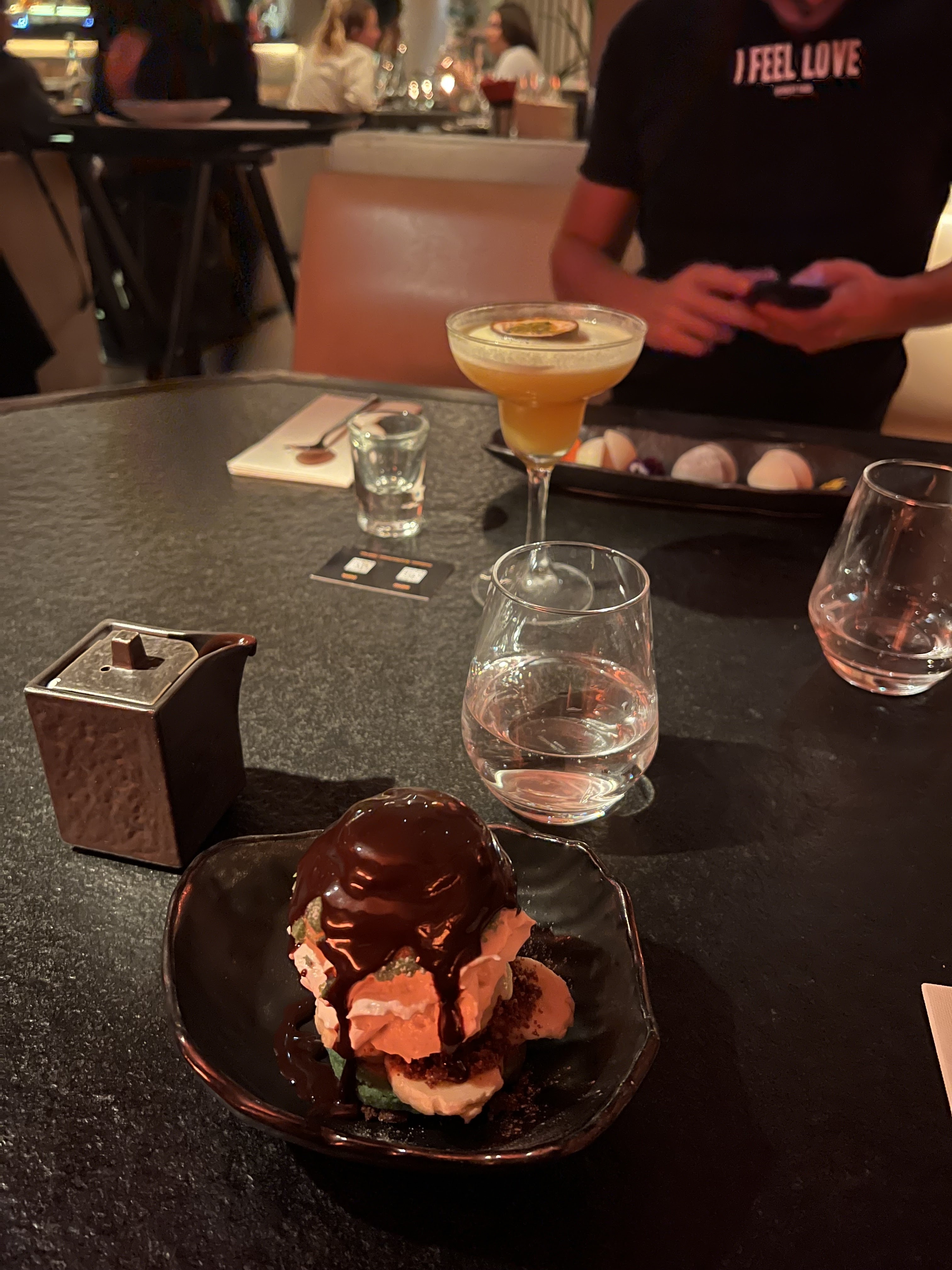 Je suis parti hier soir pour mon anniversaire avec mes copines à peine arrivée à 20h30 l’hôtesse nous informe que nous devons libérer la table à 22h, de quoi refroidir tout le monde, le serveur assez insistant nous a mis assez mal à l’aise, les plats sont petits mais cela fais parti du concept. Fin bref ce restaurant ne vaut pas la hype je lui mettrais un 5/10 pour la nourriture mais sans plus.. assez déçu