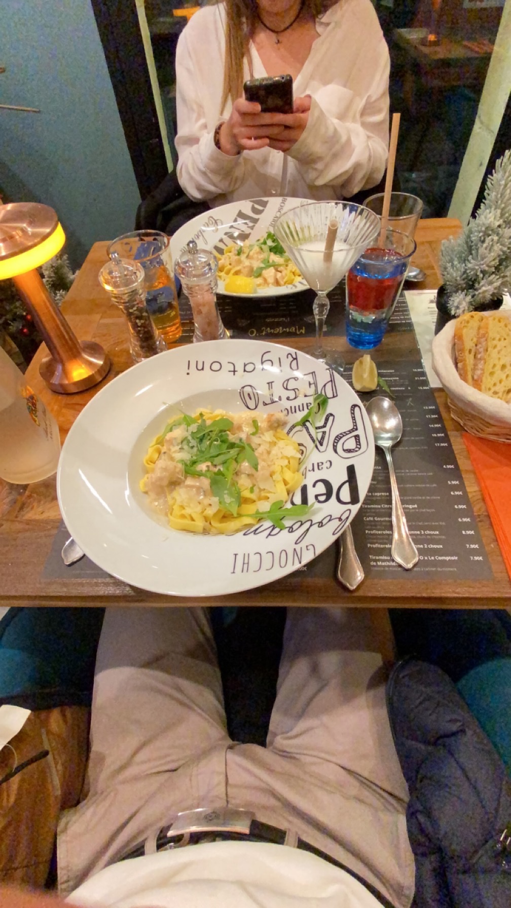 Partir dîner à 19h45 dans un resto italien parce qu'une envie de spaghettis entre autre carbonara à la carte qui me tente et qu'il n'y en a plus .....!!!!! Et 6€ un verre de Ricard ... Je dis à jamais....