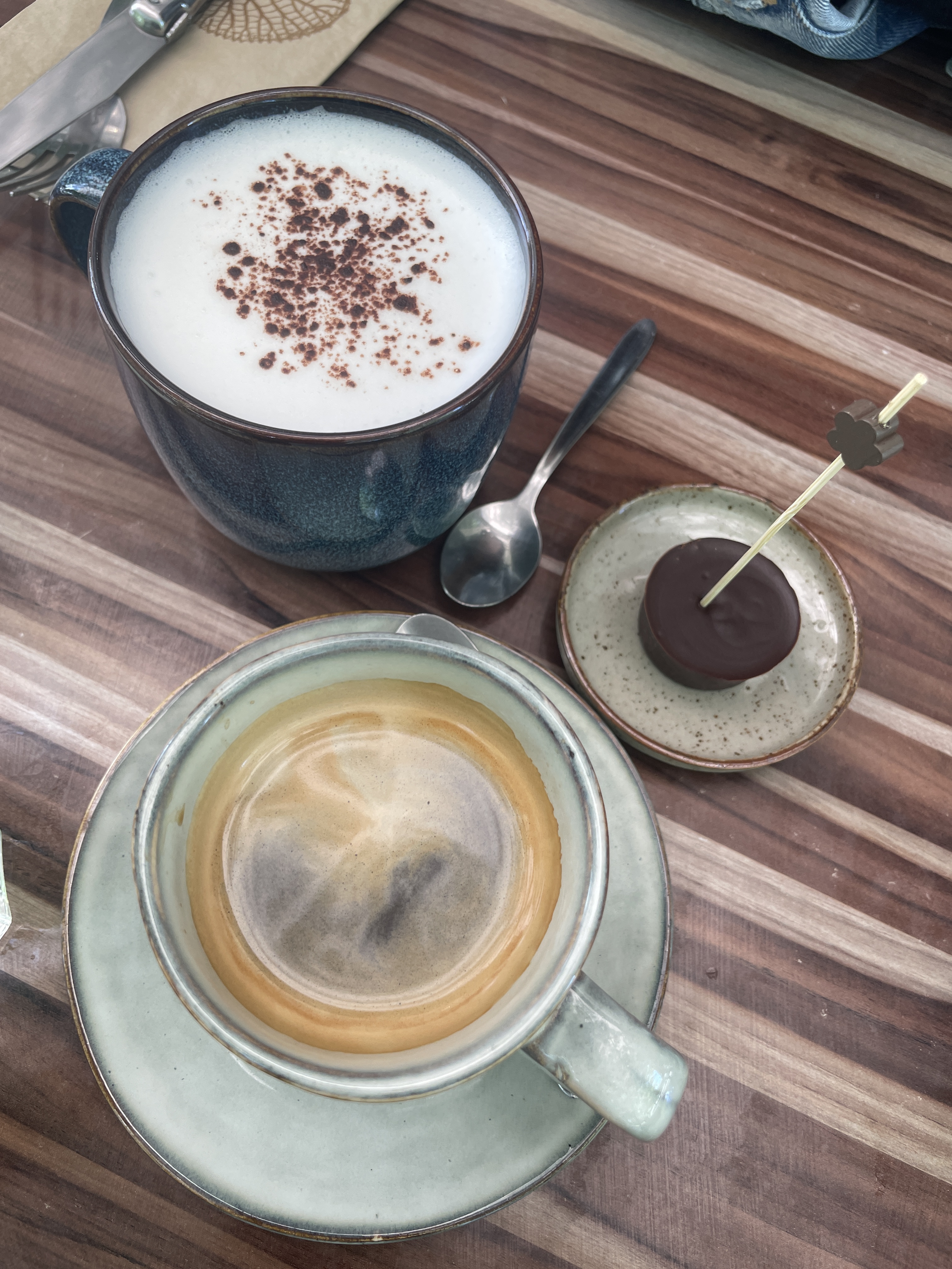 Serveuse incroyablement sympathique, belle ambiance sous les arbres et desserts excellents, dont un cappuccino au lait végétal. Que veux-tu de plus?