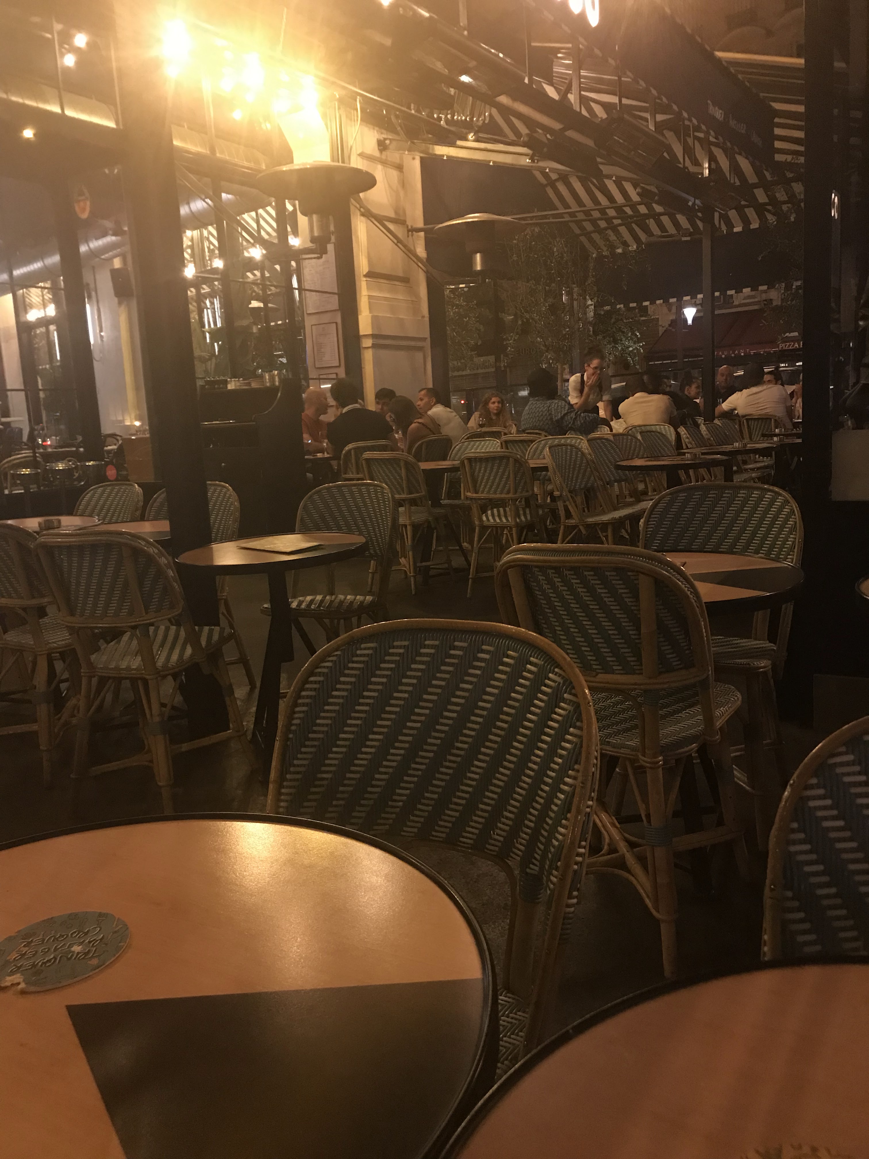 Nous avons séjourné dans un hôtel voisin et avons déjeuné ici le jour de notre départ de Paris. Notre serveur était très gentil, mais il est vrai que 2 heures pour le déjeuner étaient un peu difficiles - nous avons cependant appris lors de notre voyage en Europe à laisser plus de temps pour nous asseoir et manger. Nous avons adoré la nourriture que nous avons eue ici, tout était délicieux et c'était très utile d'avoir une version anglaise du menu. L'intérieur du restaurant est très joli, mais nous avons choisi de nous asseoir dehors. Le verre autour des sièges extérieurs du restaurant rendait un peu chaud pour s'asseoir dehors, et toute la fumée était emprisonnée avec nous, mais dans l'ensemble, c'était une expérience agréable ici et nous reviendrions.