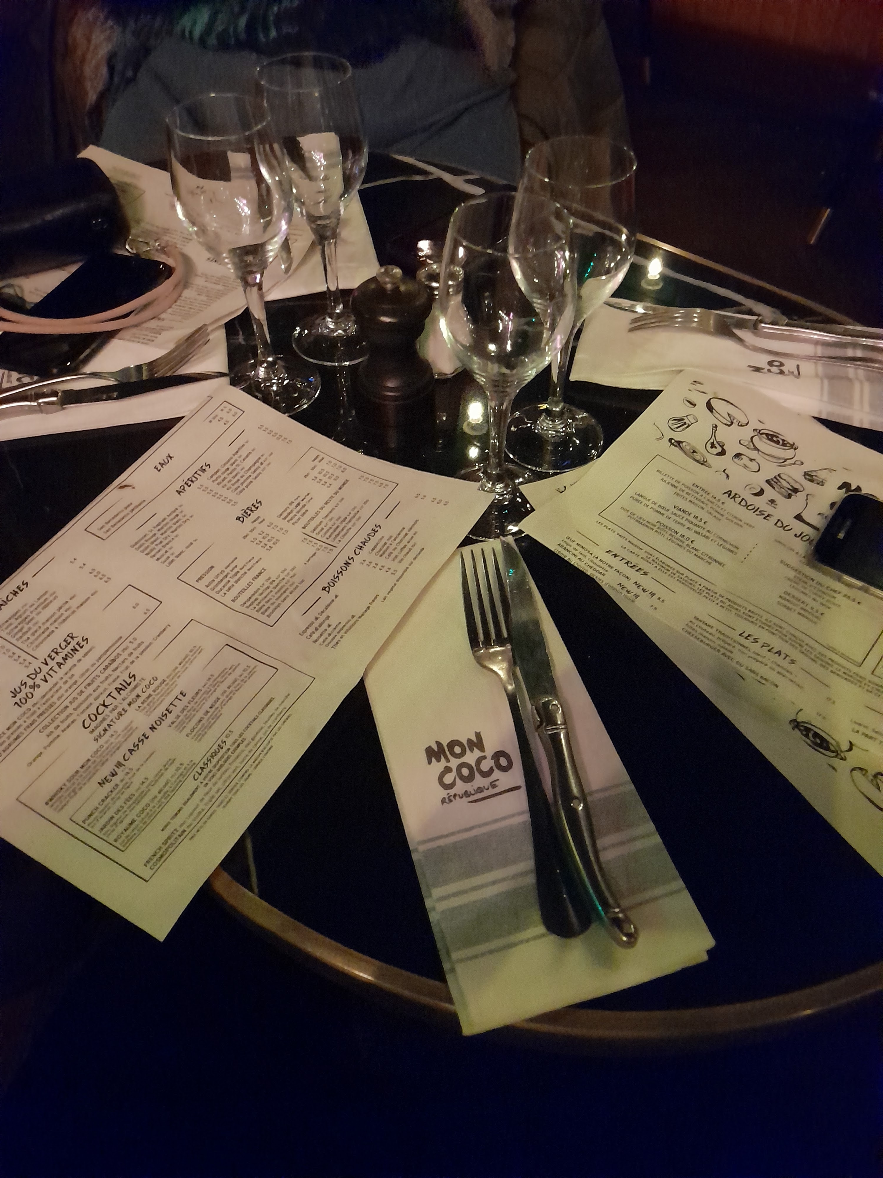 J’ai eu l’occasion de me rendre au coco après un spectacle au palais des glaces. Nous sommes arrivées un peu avant 23:30 pour dîner à 2. Nous avons été installées en terrasse, 20 minutes d’attente pour qu’on daigne prendre nos commande de boissons et nous apporter la carte des repas, qui aussitôt donnée nous a été aussitôt reprise. C’est 10 minutes plus tard qu’on m’informe que ma commande n’est plus disponible. Nous avons fini par attendre encore pour être servi une burratta et 6 escargots (sans spécifié la carafe d’eau que l’on a jamais vu). Les plats sont fades, les boissons décevantes pour le prix. À la suite de ça je peux vous dire qu’on a commandé à 00:15, 2 crêpes qui ne nous ont jamais été servies car à 1h j’ai perdu patience. En réglant l’addition nous apprenons qu’aucune crêpe n’a été lancée. Le restaurant n’était pas plein donc je ne saisis pas l’attente ni le manque de disponibilité des serveurs pour les prises de commandes (quand elles sont faites) ou encore le manque d’excuse ou service client.