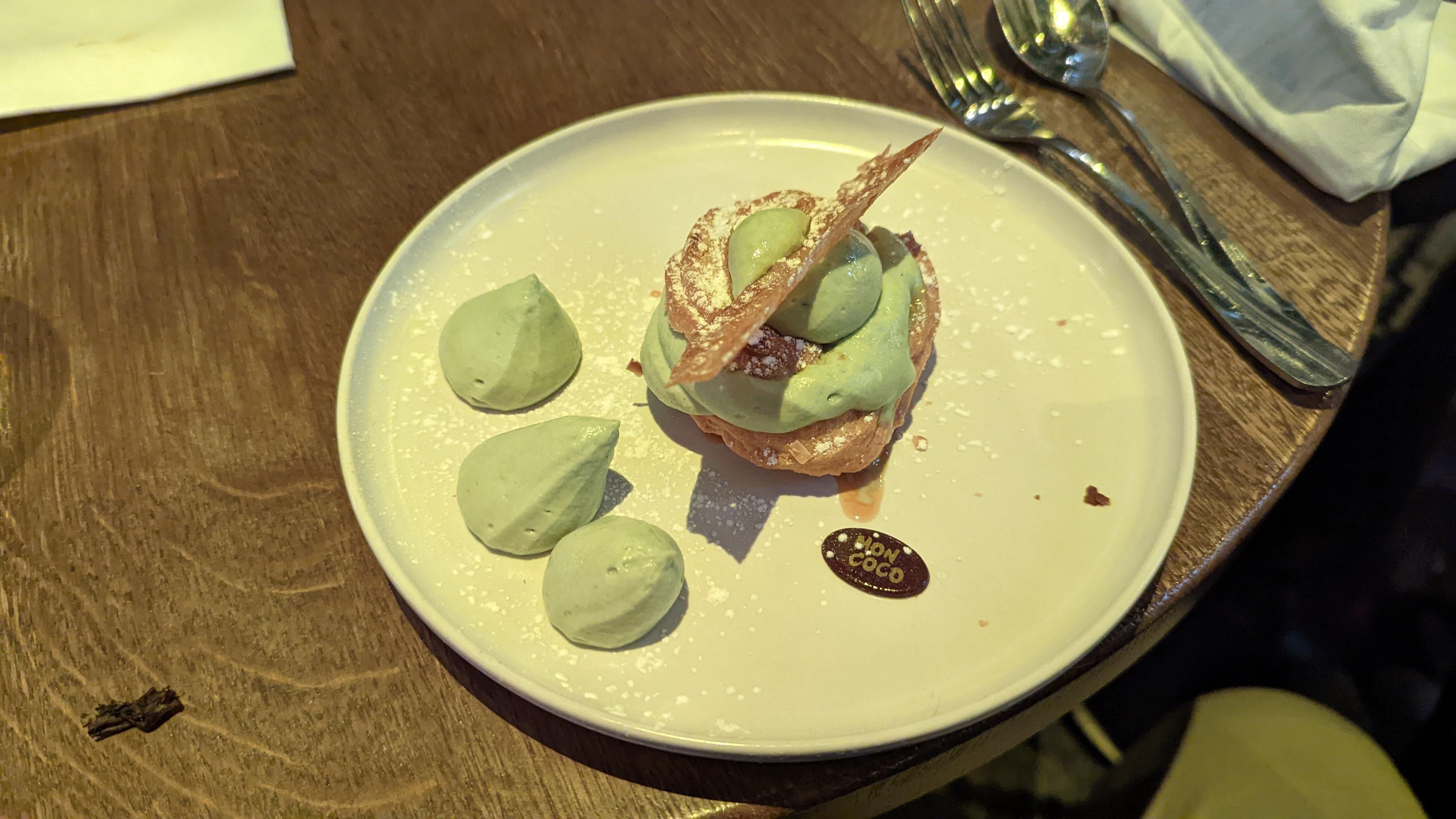 Paris-Brest était vraiment mauvais. Ils ont fait de leur mieux et la présentation était incroyable mais le pain utilisé était carrément mauvais. Croquant dans le mauvais sens. Leur hamburger était correct mais les frites étaient trop grasses pour être appréciées. La première fois de ma vie, je n'ai pas pu finir les frites.