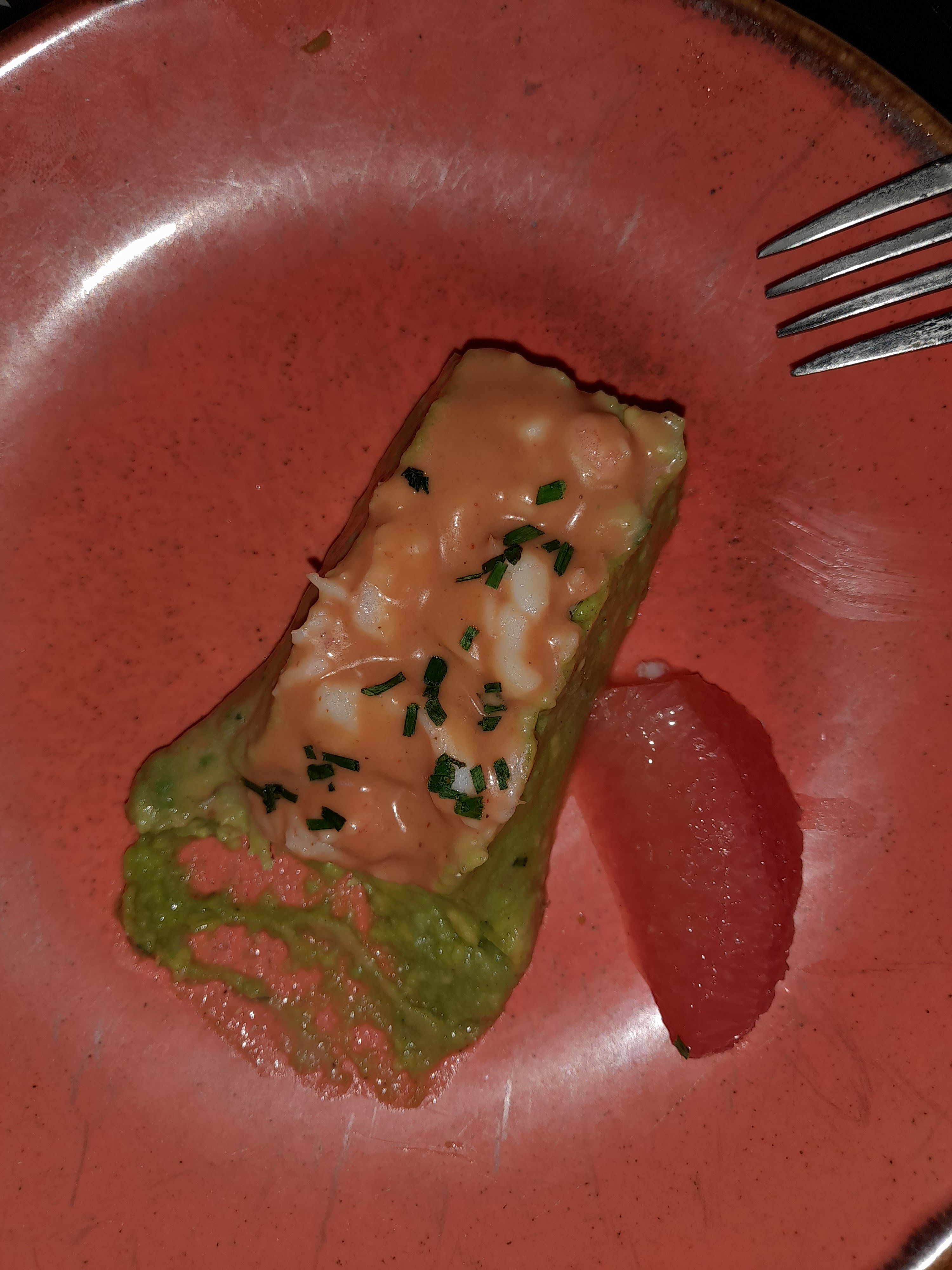 Je n'ai pas aimé le carpacio trop de sauce sur la viande mais c'est une question de goût/ la limonade à l'hibiscus,une belle découverte/ la tartelette à la fraise avec sa pâte brisée rose 🍓 délicieuse.. Le tartare saumon/crevettes un vrai délice