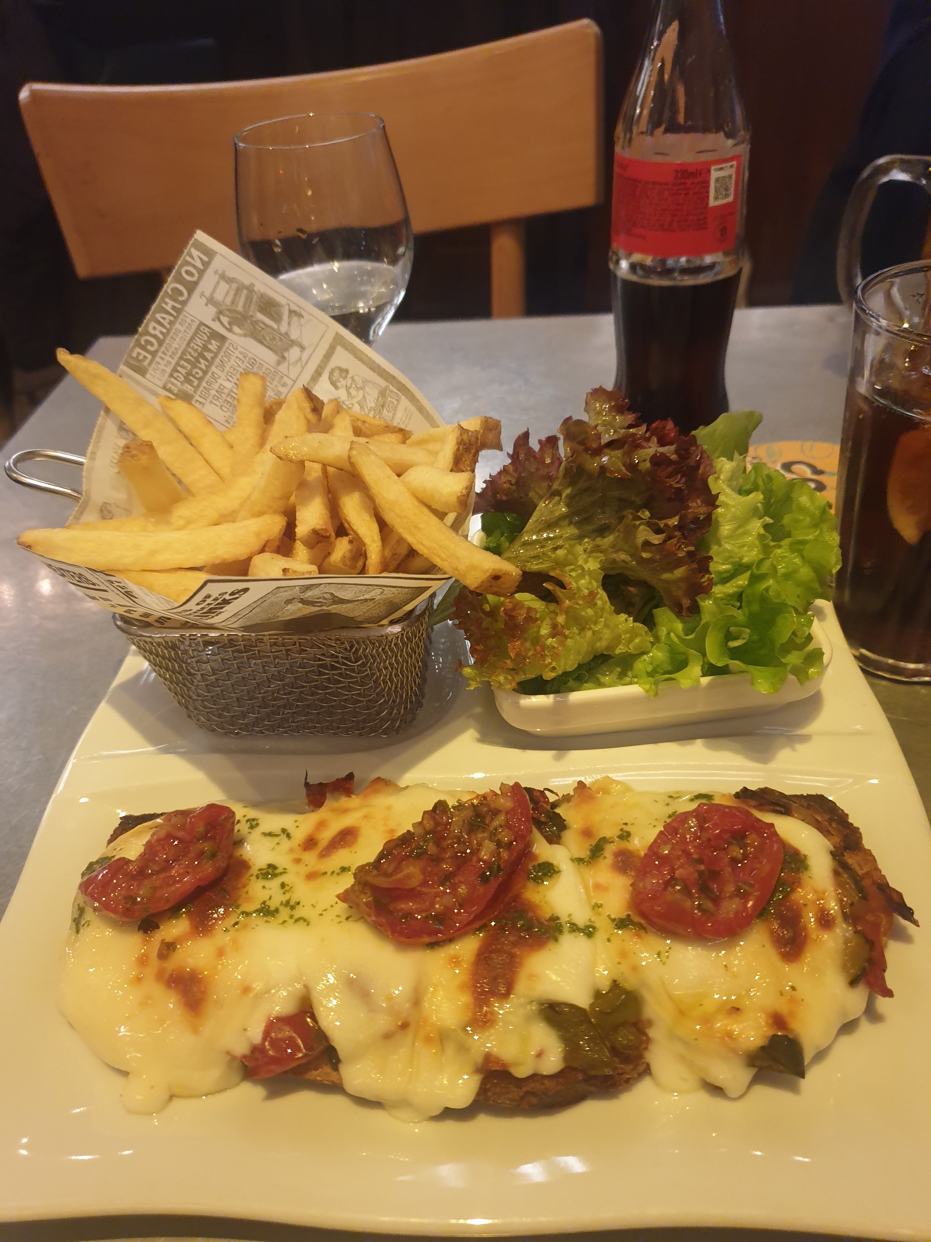 Bon rapport qualité/prix . Service au top meme si l’anglais n’est pas leur fort. Blanquette de veau et croque madame au top ! Ambiance et décors agréables . Une visite s’impose aux toilette pour l’originalité!