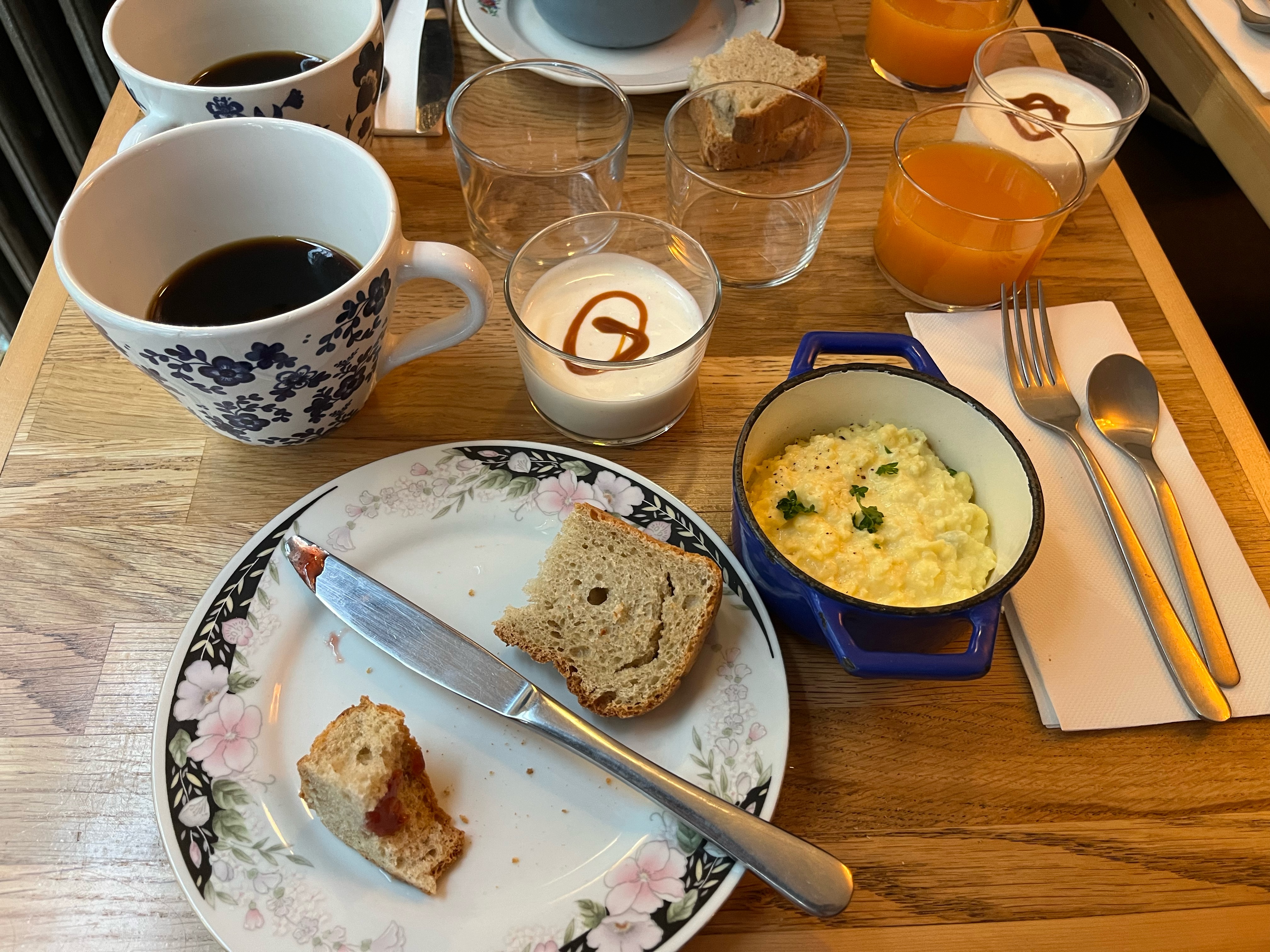 Brunch (26€) : copieux et délicieux. Le chocolat et le beurre sont particulièrement gouteux.