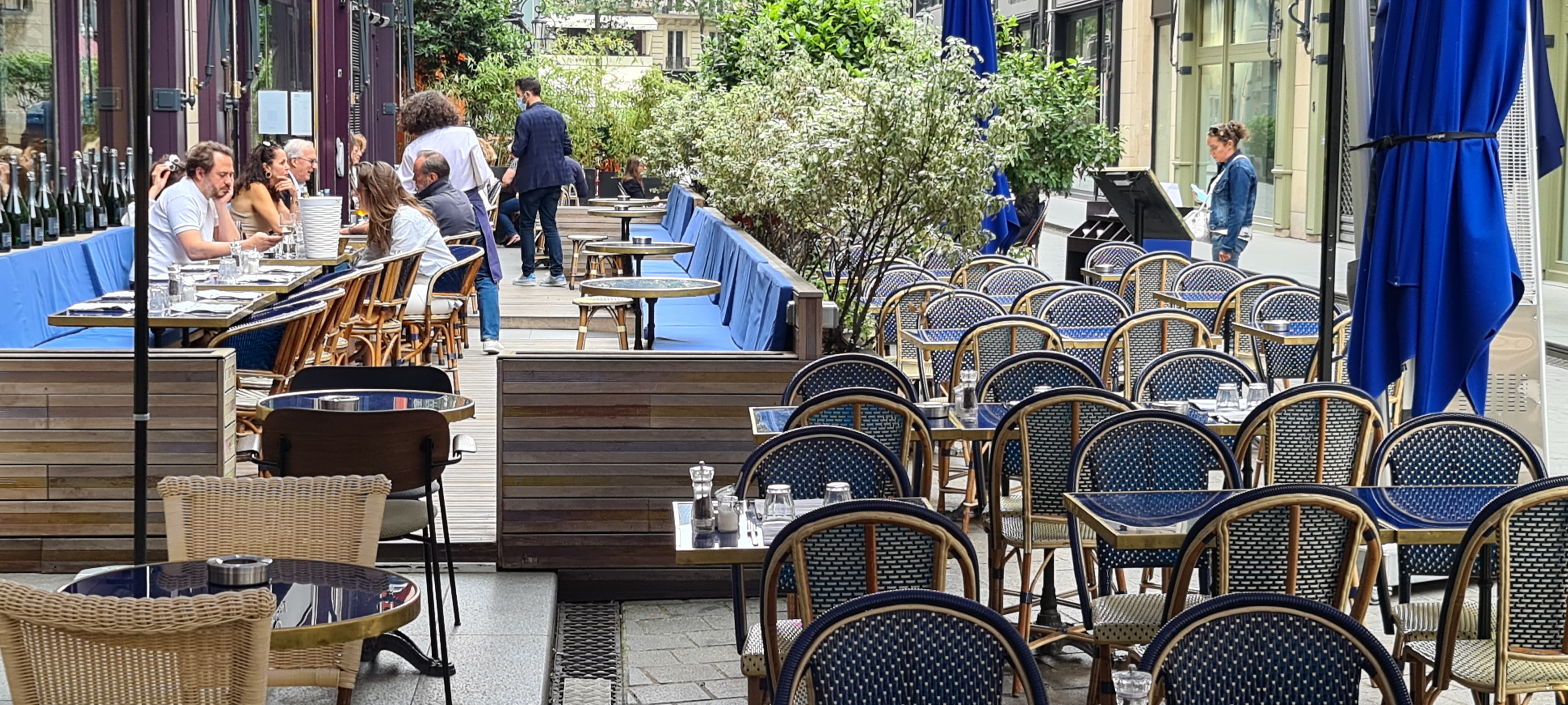 Agréable terrasse quand le temps s'y prête, service aux petits soins et on y mange très bien. Pratique également juste à côté du théâtre Édouard 7, pour les personnes a mobilité réduite, le parking éponyme est juste en face.