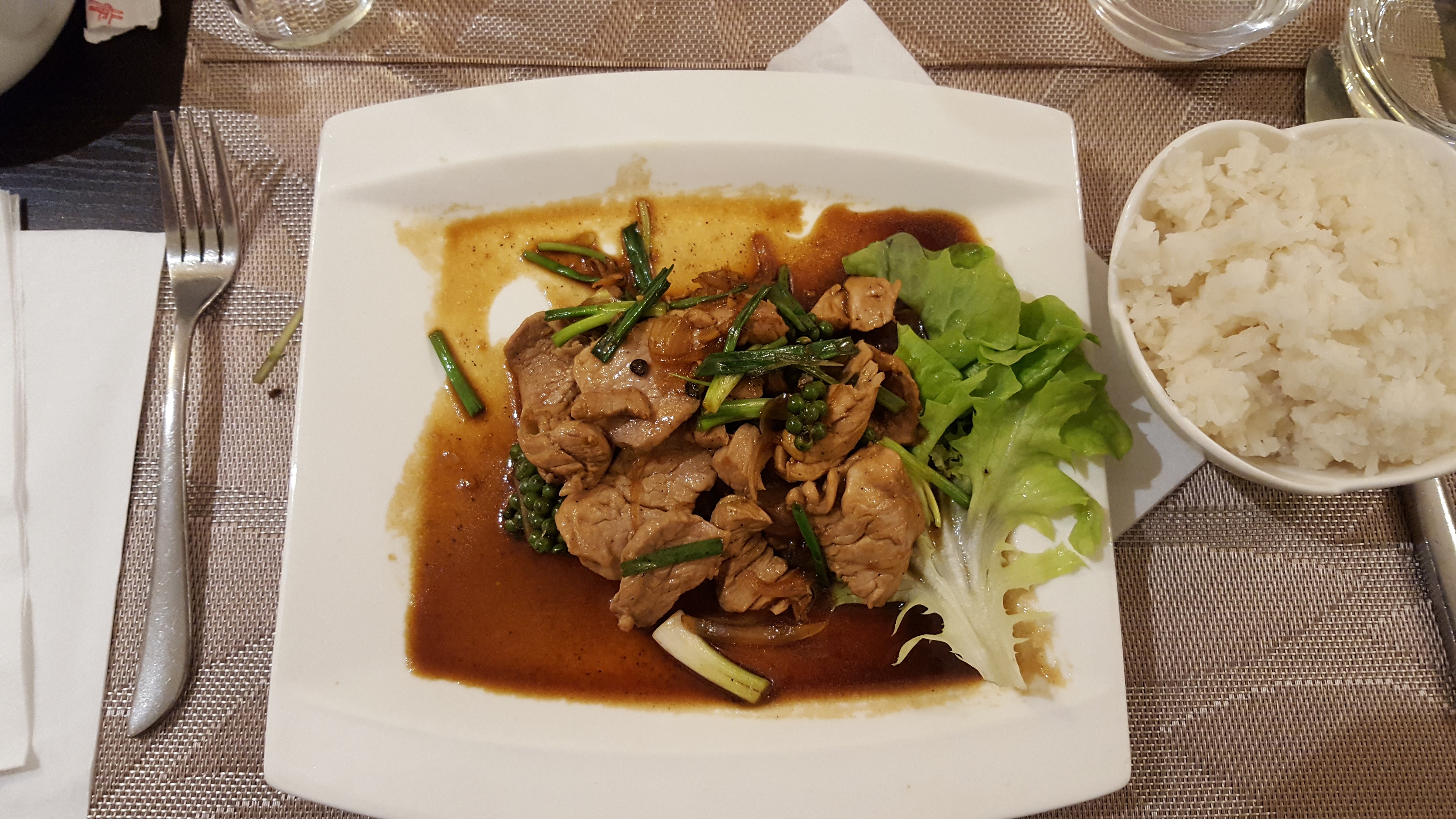 Soupe très bonne mais porc au caramel déplorable et riz en option payante pas ouf pour un thaï, le service est bon.