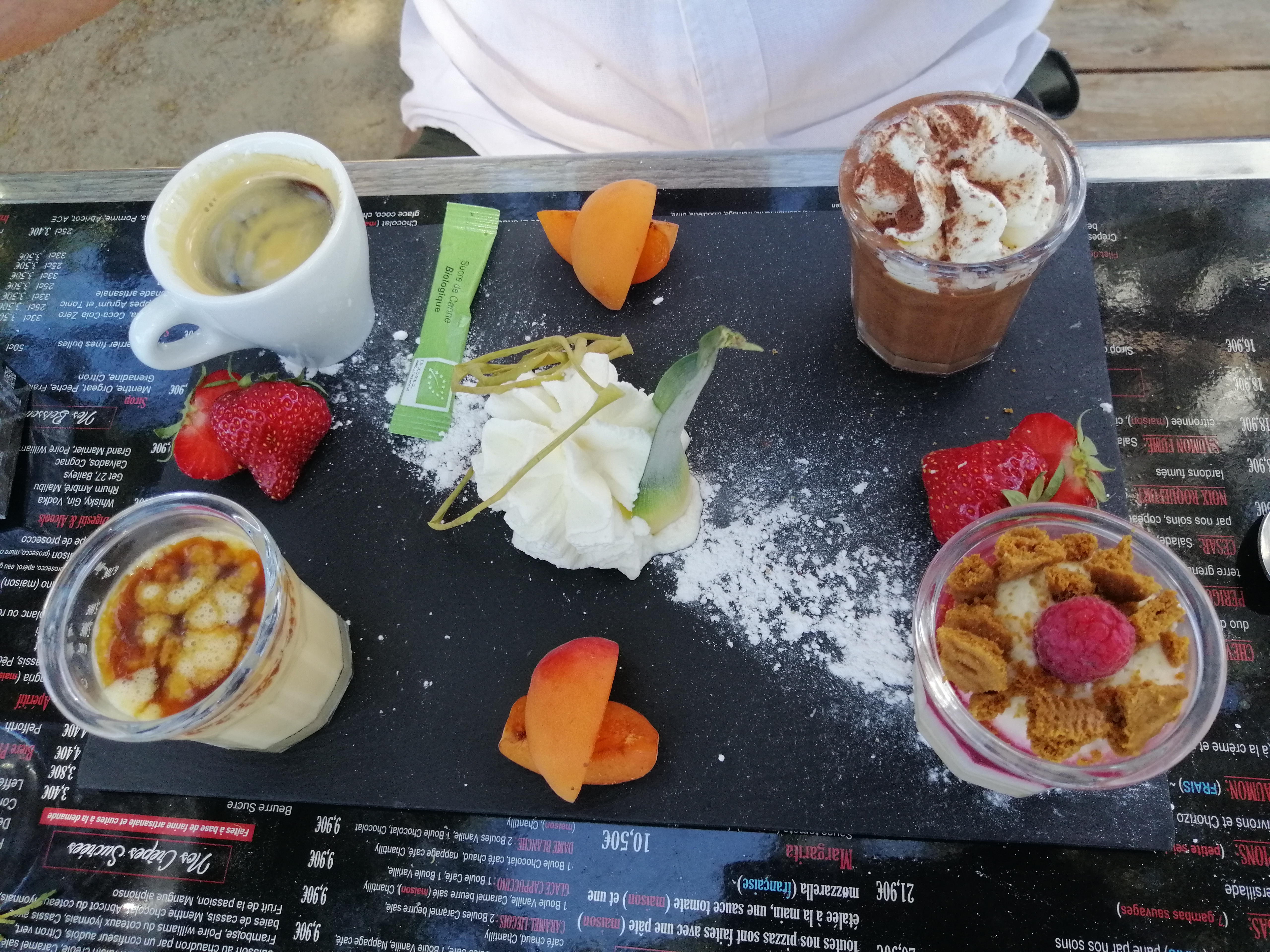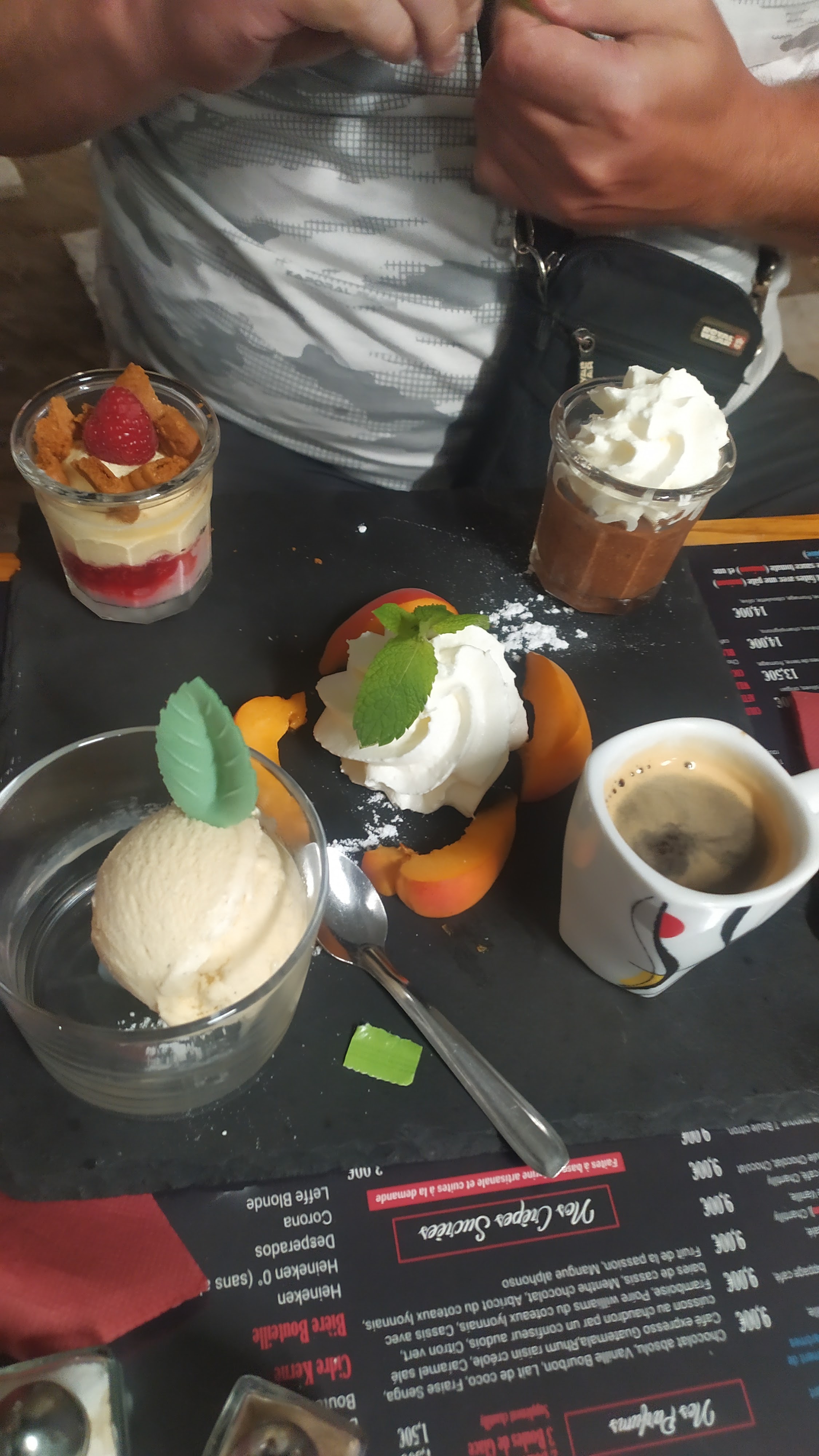 Rien à redire tout était parfait Nous sommes venu une 1er fois pour déguster une coupe de glace qui étais extrat Et la 2eme fois pour le repas du soir ou tout était parfait également la parillade au top poisson frais et le magret de canard excellent Les desserts au top Des produits de qualité Et un service au top Une adresse à garder quand nous reviendrons dans le coin
