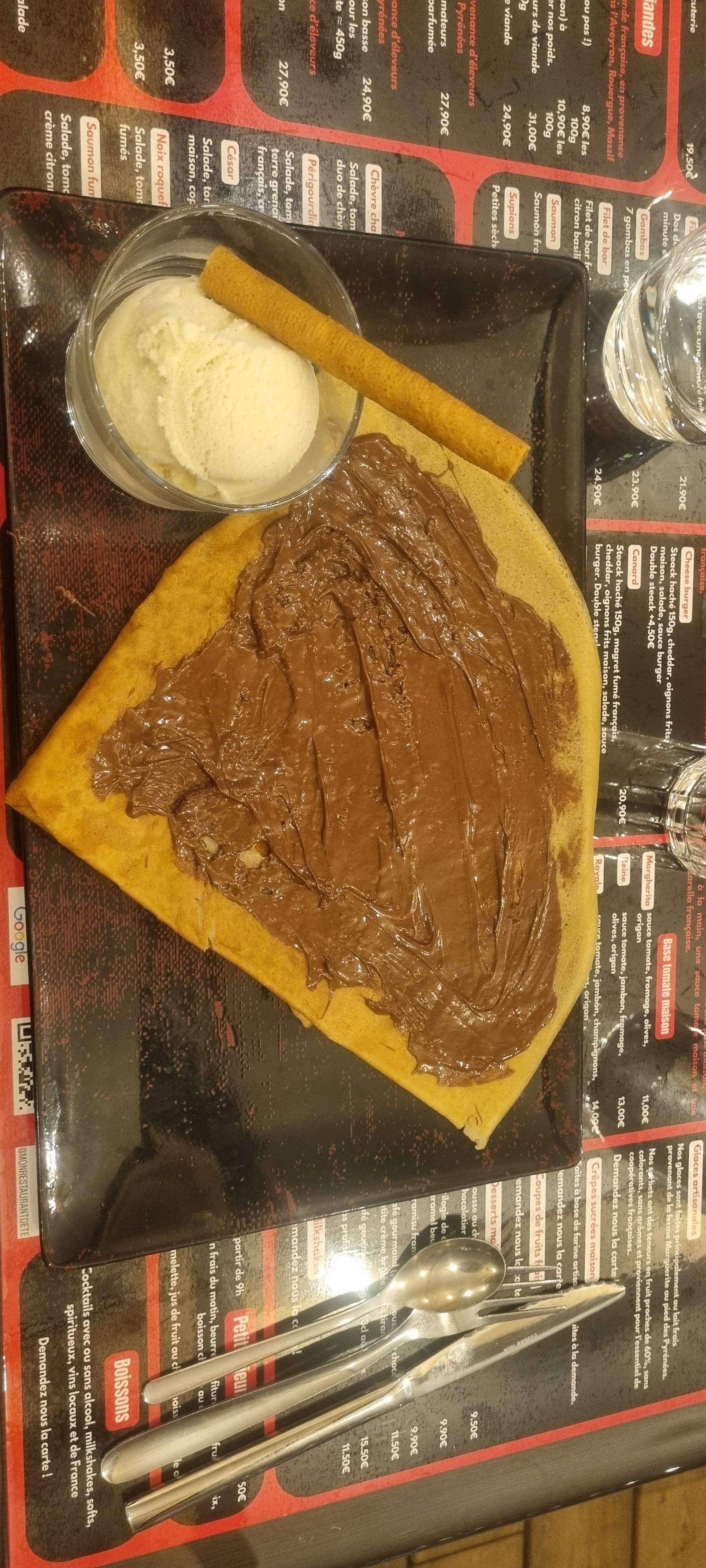 Version française en bas Wir waren vor ein paar Jahren einmal hier und waren wieder hier um super leckere Crêpes zu genießen. Das Bild zeigt Belle Hélène. Personal und Restaurant sind super. Hinfahren lohnt sich! Il y a quelques années qu'on était ici. Étant dans le coin cette année, on est venu en famille pour manger des crêpes délicieuses, p. ex. La belle Hélène (photo). Personnel très sympa. Le restaurant est vraiment à recommander, vaut un détour !