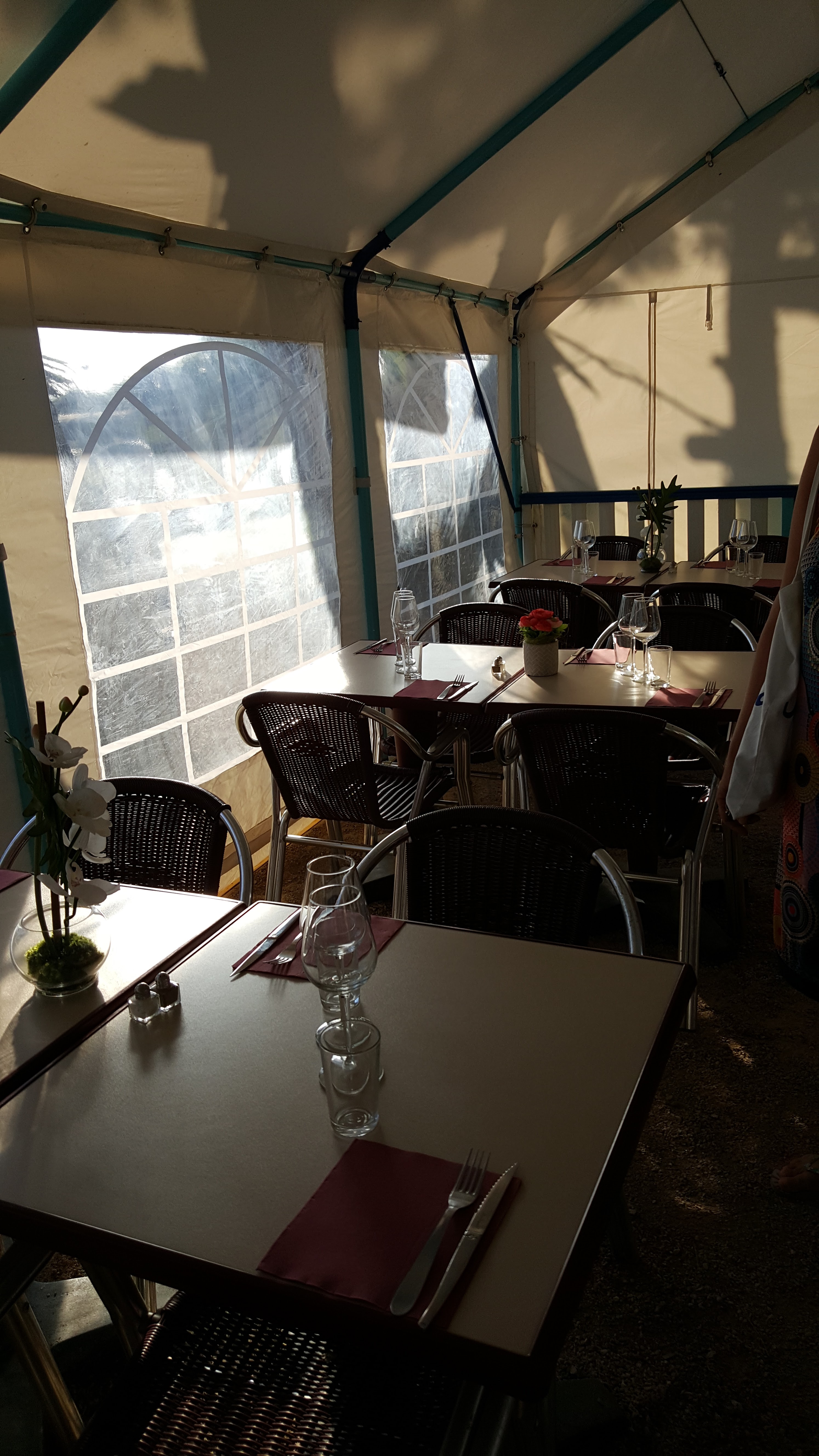Bonjour lieu sympa, très bonne ambiance. On sent que l'équipe s'entend bien. Copieux et bon. Très bon cocktail. Covid OK. Je recommande. Bonne fin de saison à l'année prochaine. Éviter Fumeur dans le chapiteau. Encore ouvert 18 septembre