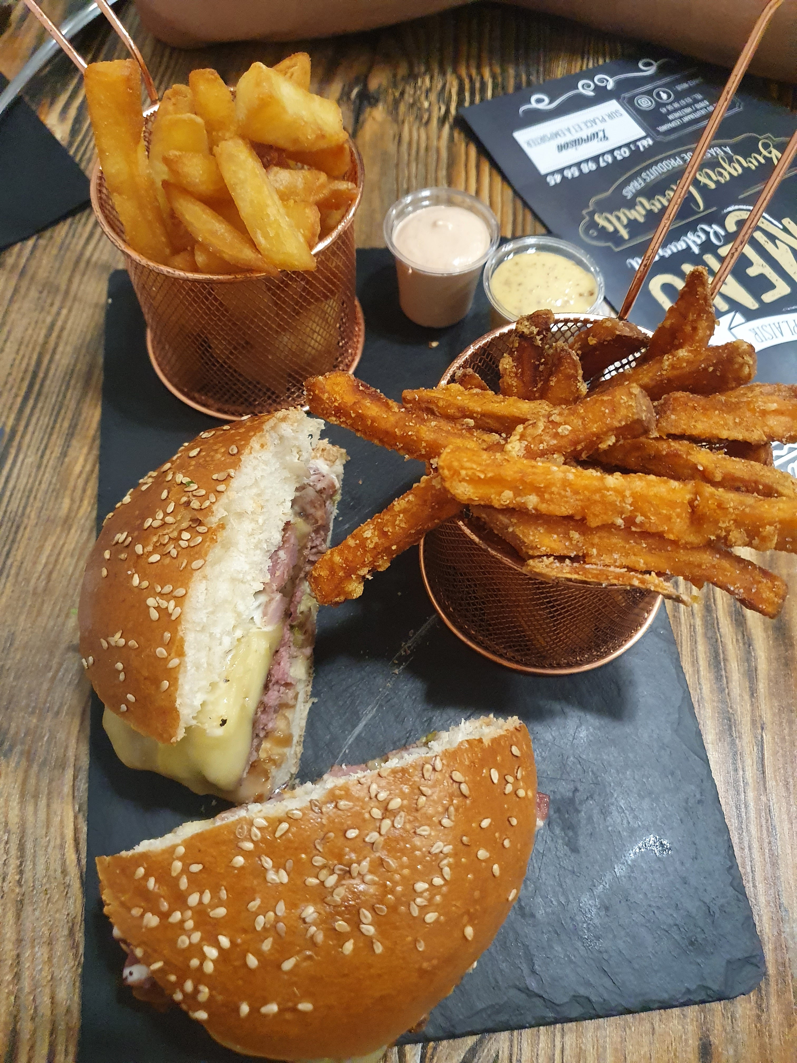 Frites (pomme de terre et patate douce) et burger excellents 😃