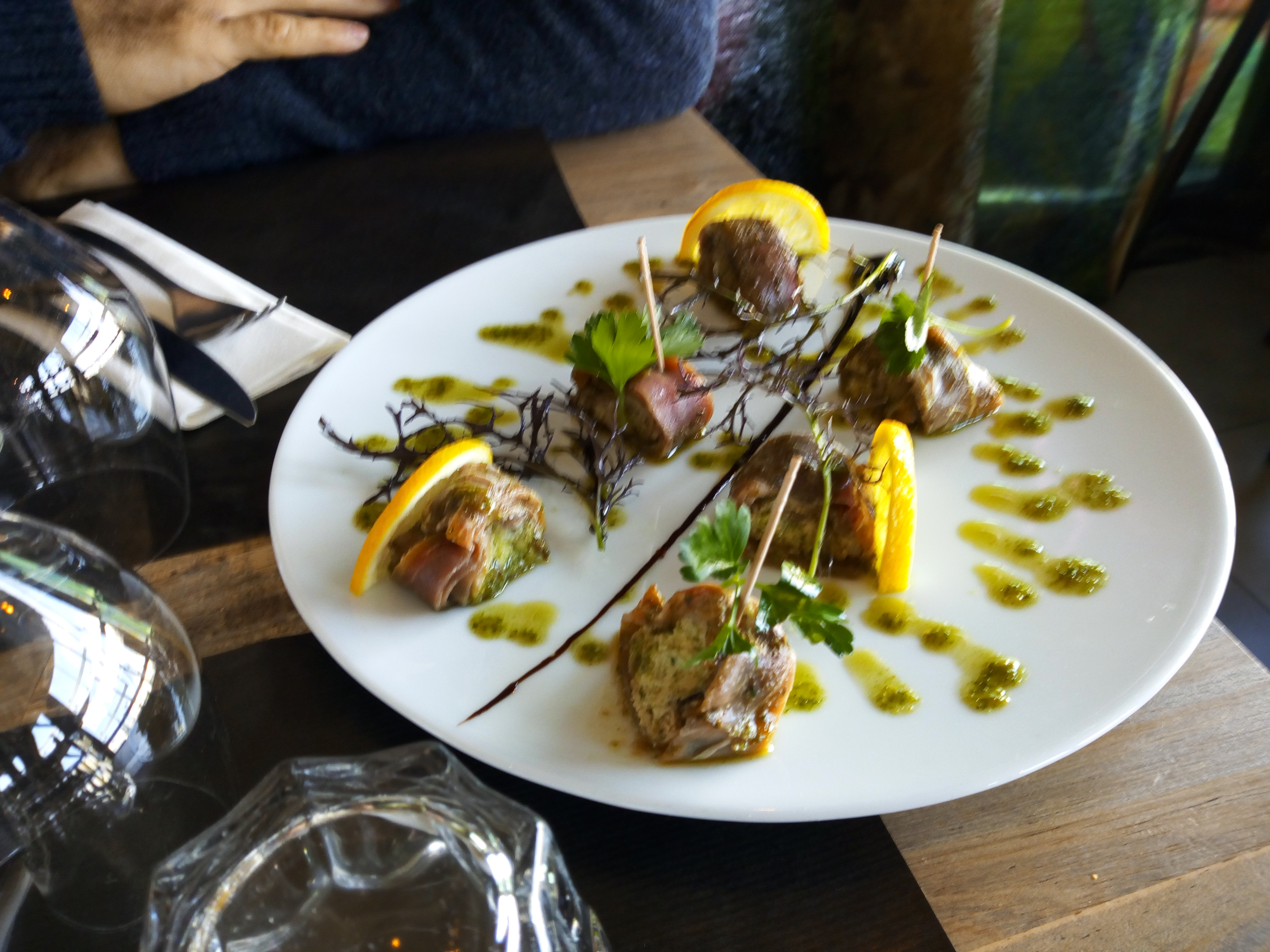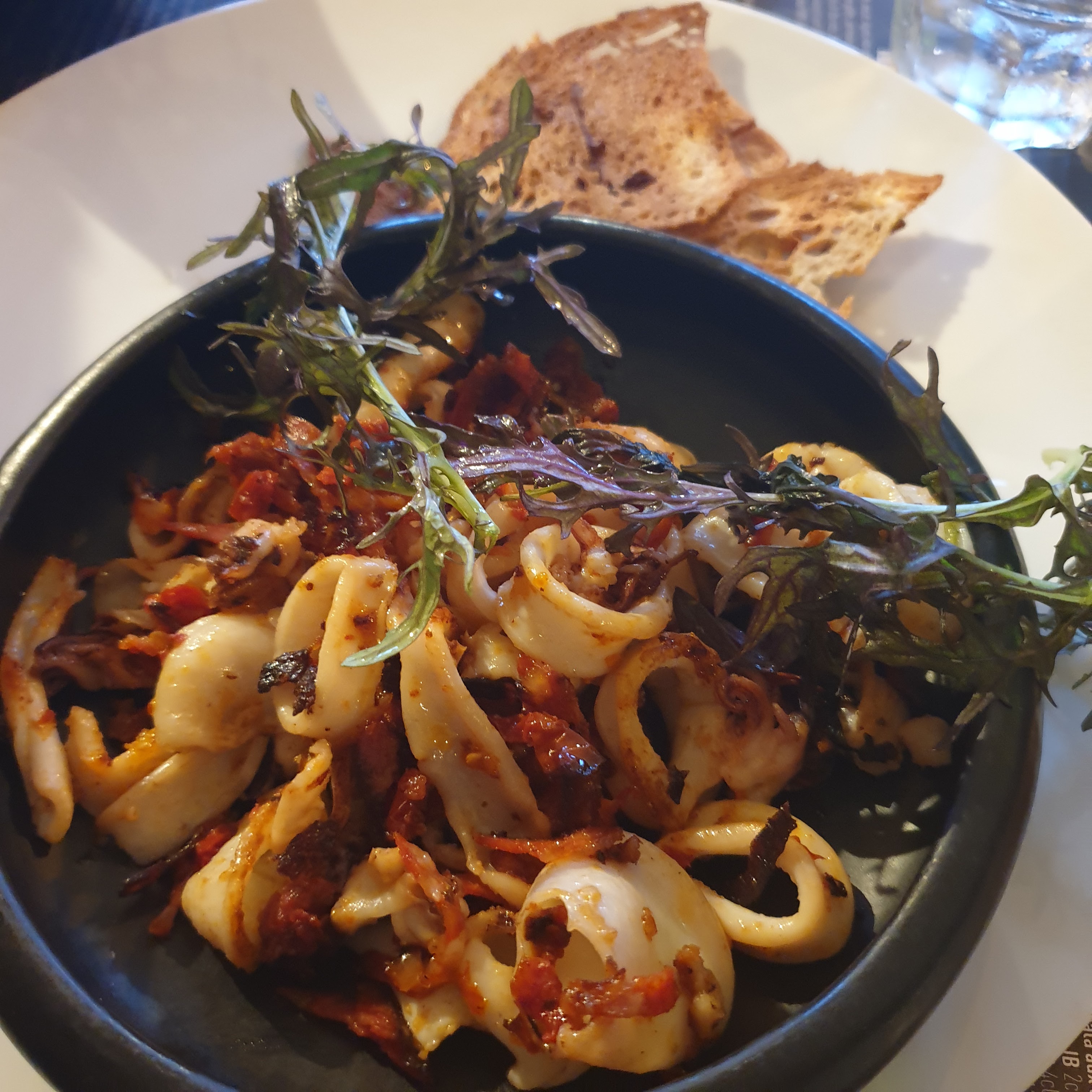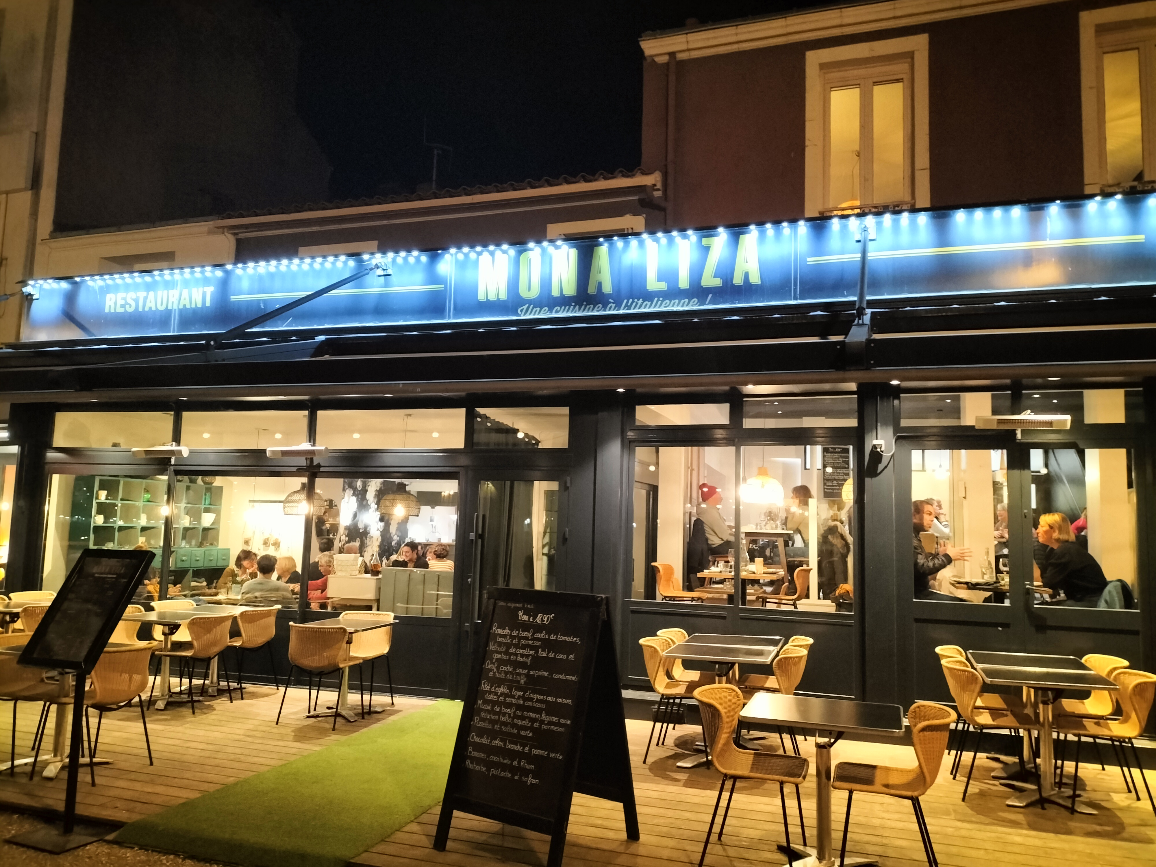 De passage aux sables d'Olonne hier soir, nous nous sommes arrêtés au Mona Liza qui se trouve face au port Olona. très bel établissement italien sur 2 niveaux ( hauteur route et un peu plus surélevé)et disposant de différentes tablées ( 2, 4 ou plus encore). On a été vite accueilli et vite placé, personnel rapide, efficace et expérimenté sur les spécialités italiennes. Nous avons pris 2 desperados et on nous a offert des antipastis (bouts de pizza au pesto) puis nous avons commandé une assiette de calmars ( chipirons, lamelles de chorizo au citron confis avec ses tartines grillées), 1 assiette bruchettas ( tartines grillées frottées à l'ail avec lit de tomates fraiches, mozzarella avec un filet d'huile d'olive et basilic) et une assiette de pizzetta Bianca ( bouts de pizza avec tomates confites, parmesan, salade et son filet de pesto. Ça été un vrai délice, on recommande fortement.