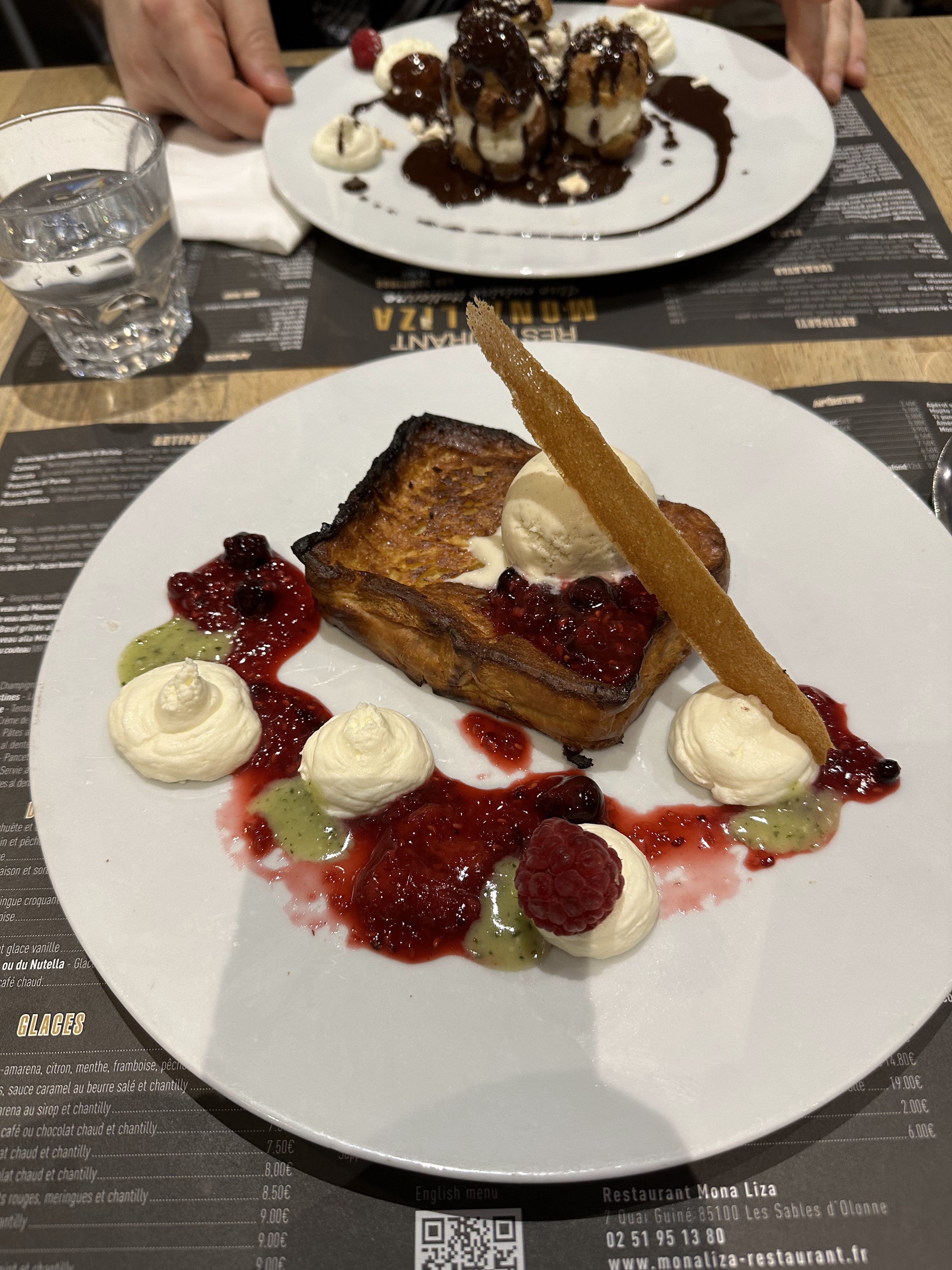 Un vrai délice. Superbe décor dans les assiettes et dans les salles de restaurant. Repas menu du midi, délicieux.. nous étions 3.. et avons panaché notre sélection. ..Nous vous recommandons sans réserve Mona Liza .aux Sables d Olonne.