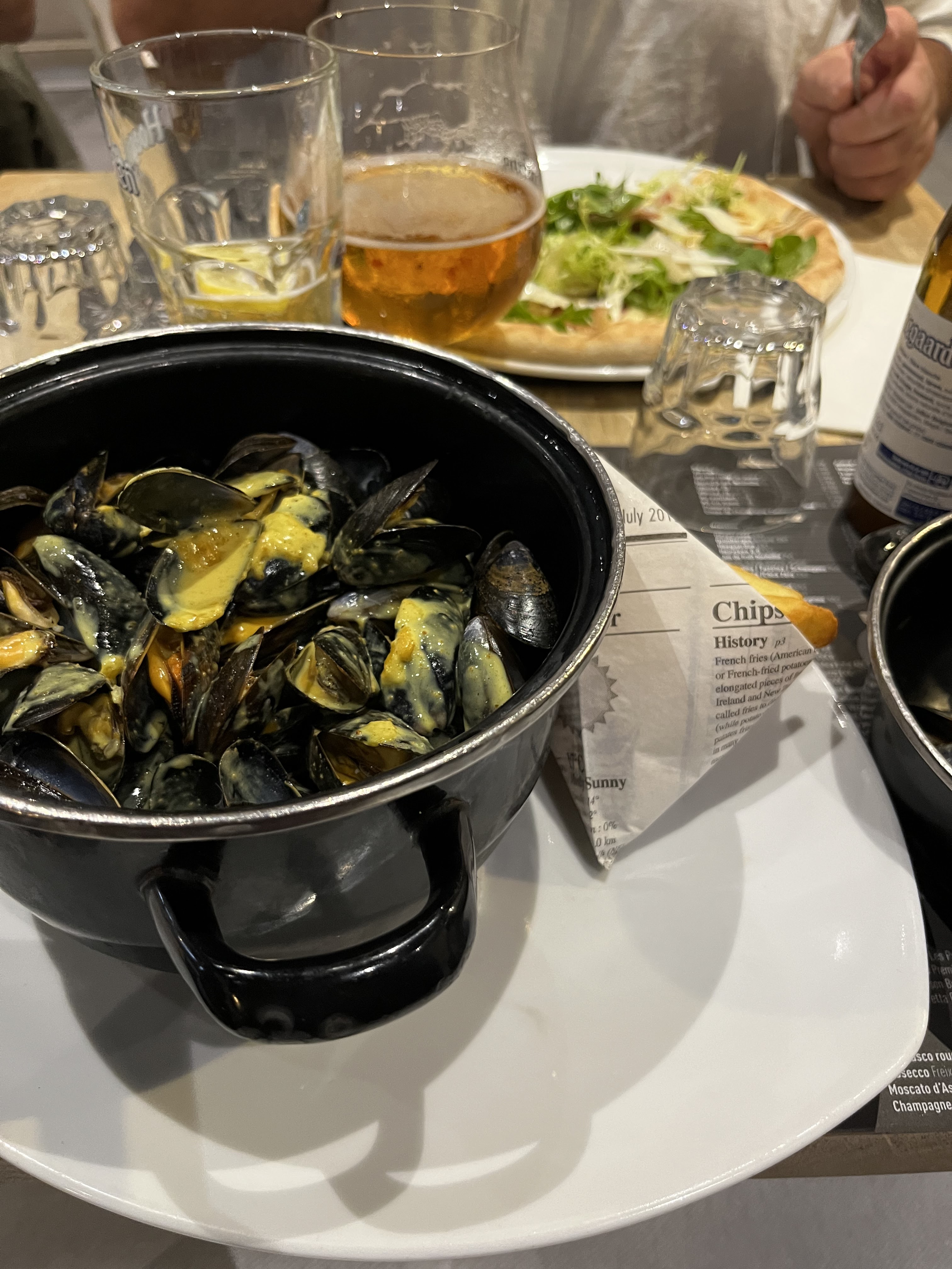 Les menus enfants sont top. Moi déçue par des moules minuscules et pleins pas ouvertes. Quant au service, malgré un accueil agréable, les serveurs sont tellement dans le jus que personne ne fait attention à nous et ils nous communiquent beaucoup de stress