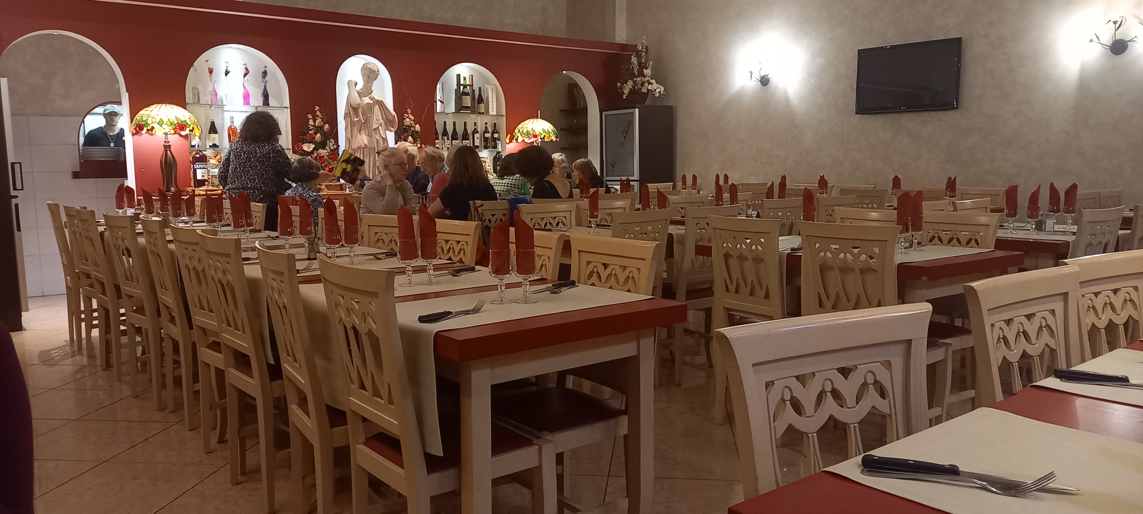 Le lieu est atypique nous transporte dans un lieu stéréotypé de l'Italie antique et moderne. J'ai testé la pizza, la pate est excellente mais les ingrédients sont bas de gamme : fromage sans gout (la serveuse a avoué à demi mot que c'était du faux fromage car elle n'a pas su me dire ce qu'il en était), thon sec et très grasse. Le service se fait sans âme, sans sourire, on débarrasse les assiettes alors que d'autres n'ont pas terminés.
