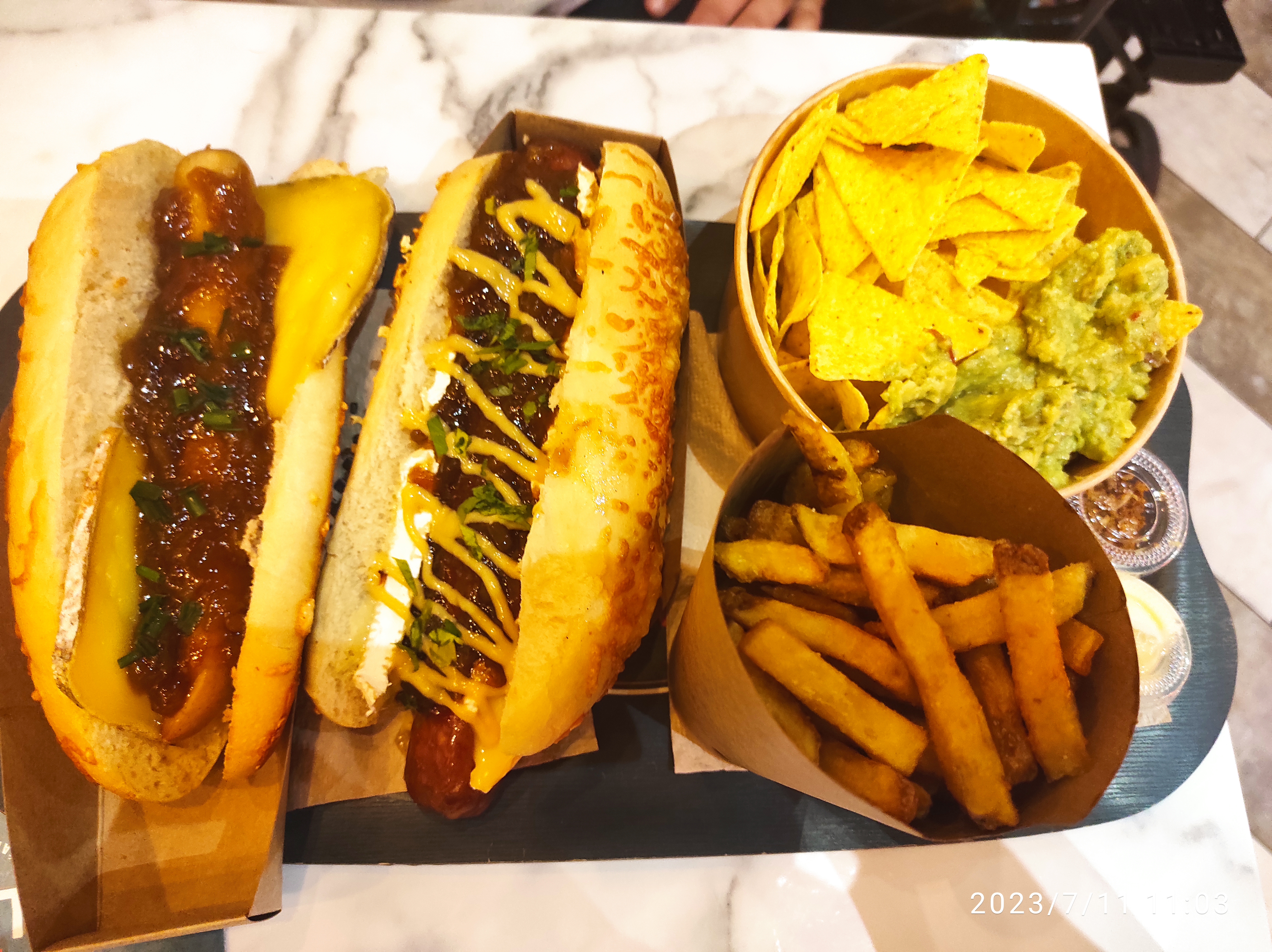 L'accueil est parfait ! De plus, les hot-dogs sont vraiment excellents et très bonne portion de nachos avec guacamole 🤩 petit + pour la saucisse bœuf 😋 je recommande vivement