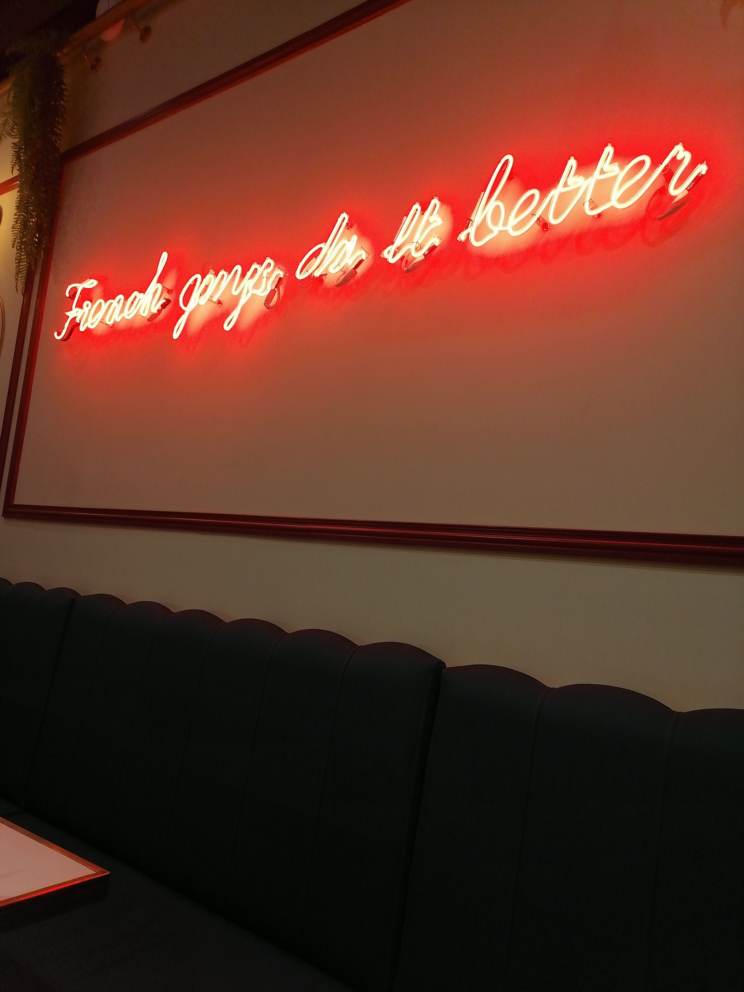 Hot Dog de classe supérieur Svp messieurs dames 😁😜. Déco classe & moderne épuré. Franchement très belle découverte. Hot dog recherchés très bon, avec des frites faites maison. Mon fils a adoré. En plus pour un prix plus que convenable. Je recommande !