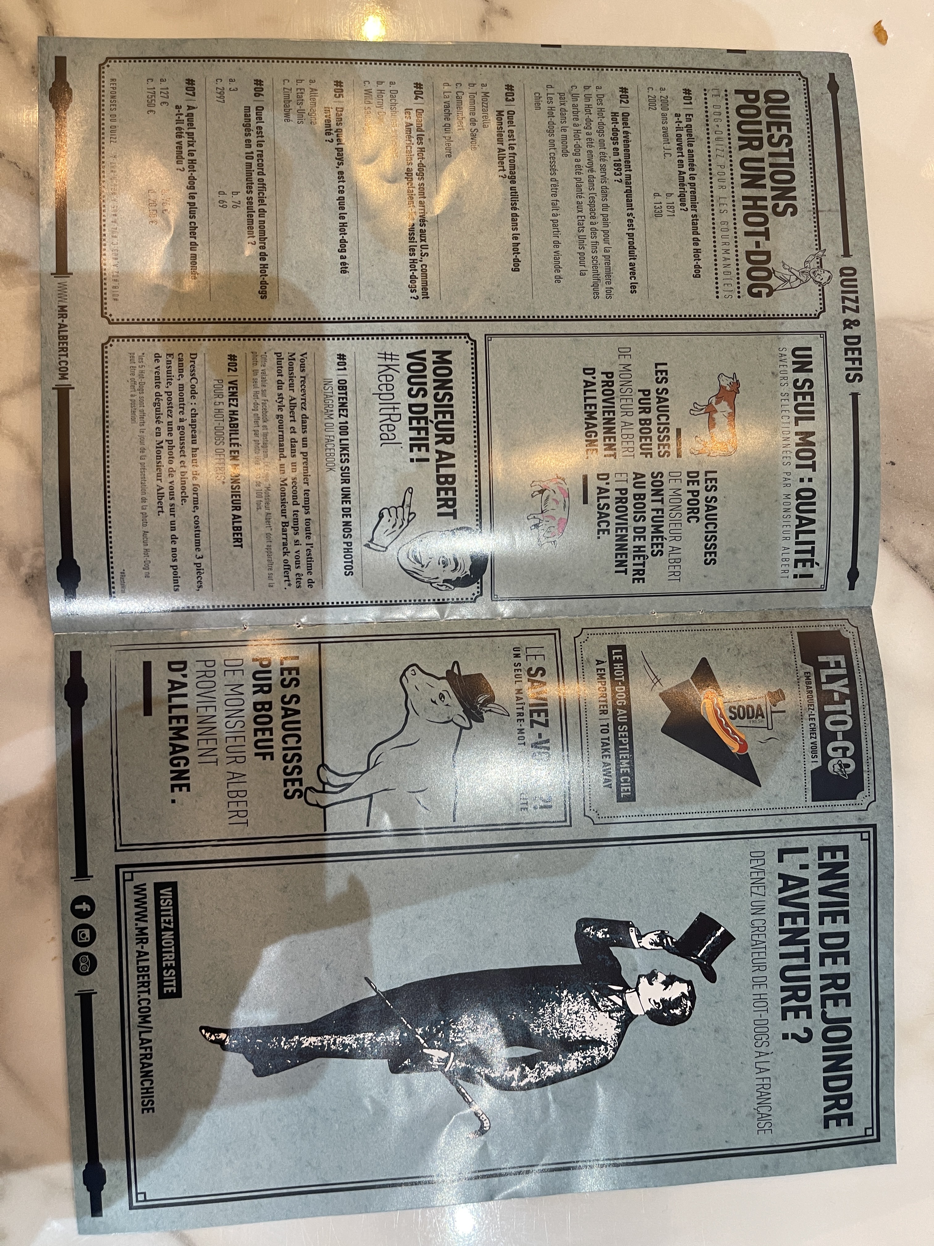 Merci tout d'abord pour votre accueil, l'ambiance et la déco sont sympas et vous avez su nous expliquer avec gentillesse le fonctionnement de votre carte. Après j'avoue avoir été malheureusement très déçue par mon hot dog ( base de camenbert) un peu sec et manquant sérieusement de camenbert et concernant les frites, un peu trop cuites et beaucoup de débris que de vraies frites.Dommage pour le prix car un peu cher au final pour une restauration rapide et manger un hot dog
